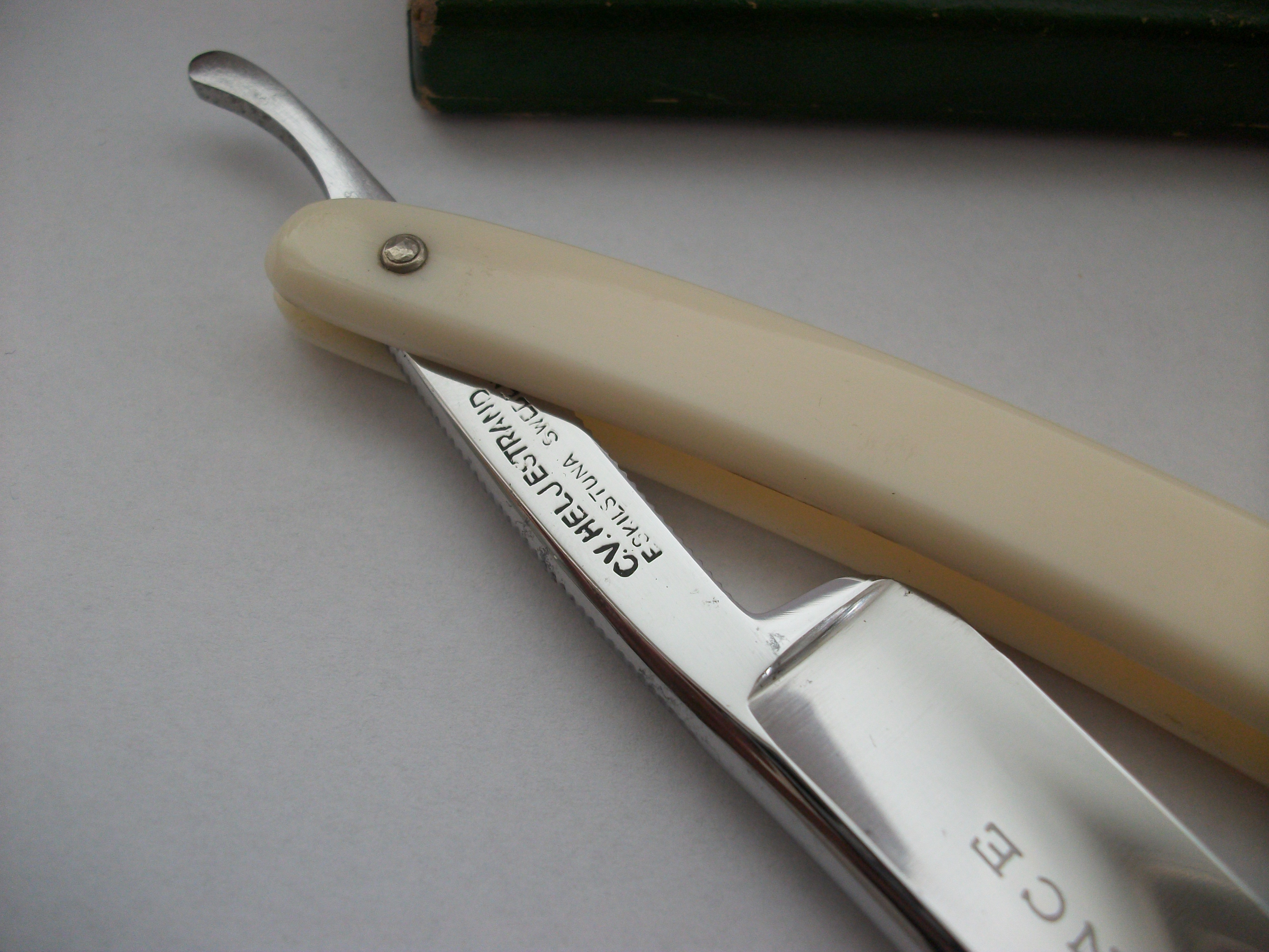Продается от mister maloi C.V.Heljestrand Le Duc Углеродистая сталь, ширина полотна 15мм, длина режущей кромки примерно 70мм. Полотно в хорошем состоянии - родной сатин и травление. Сталь в работе очень понравилась. Ручка пластик. Заточена и готова к бритью. Продано IMGP5889.JPG IMGP5888.JPG IMGP5887.JPG IMGP5886.JPG