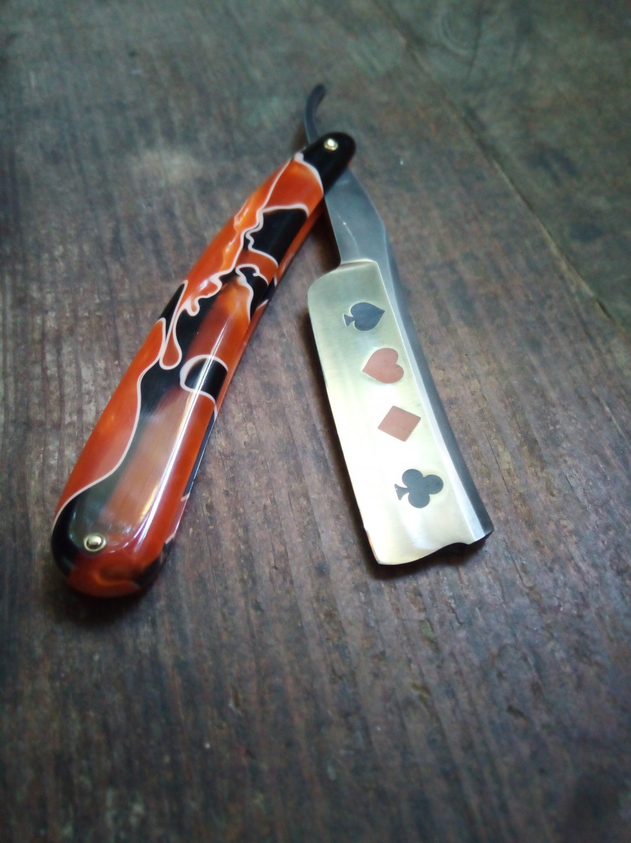Мечтаю изготовить бритву и вовсе нет, в живую очень даже хорошо смотрится. ну совсем страшной Аптекарь мог побрезговать бриться, потому пришлось немного подмарафетить, но, скажем так, продавать такое я бы не стал, ну или за совсем дешево. Если не ошибаюсь это одна из двух брит из одного куска углеродки - одна была 1 к 4 об...