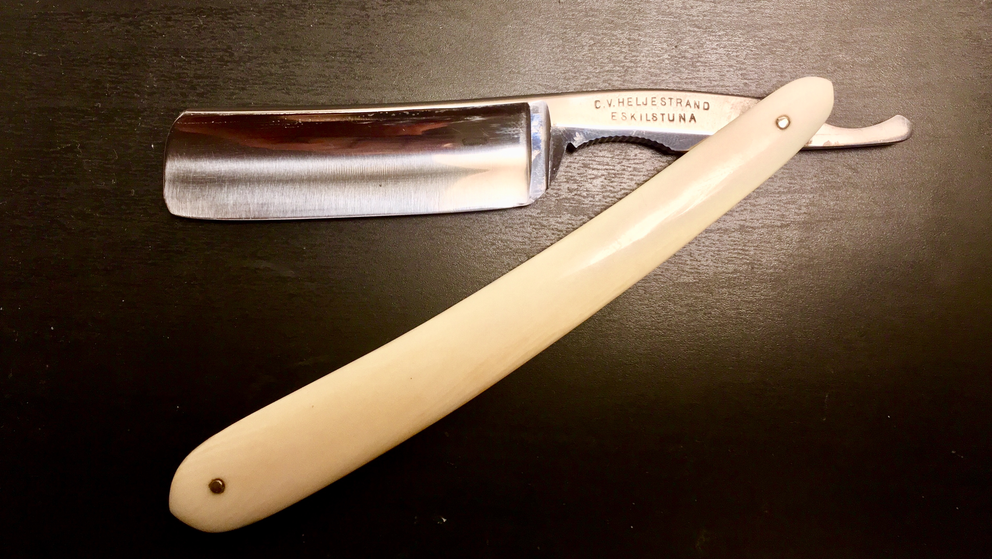 1) Heljestrand. 6/8, полная вогнутость. На этой бритве прочувствовал идею и тип шведских бритв. Несмотря на полную вогнутость, бритва очень тяжёлая. За счёт массы бреет под собственным весом очень чисто и комфортно.