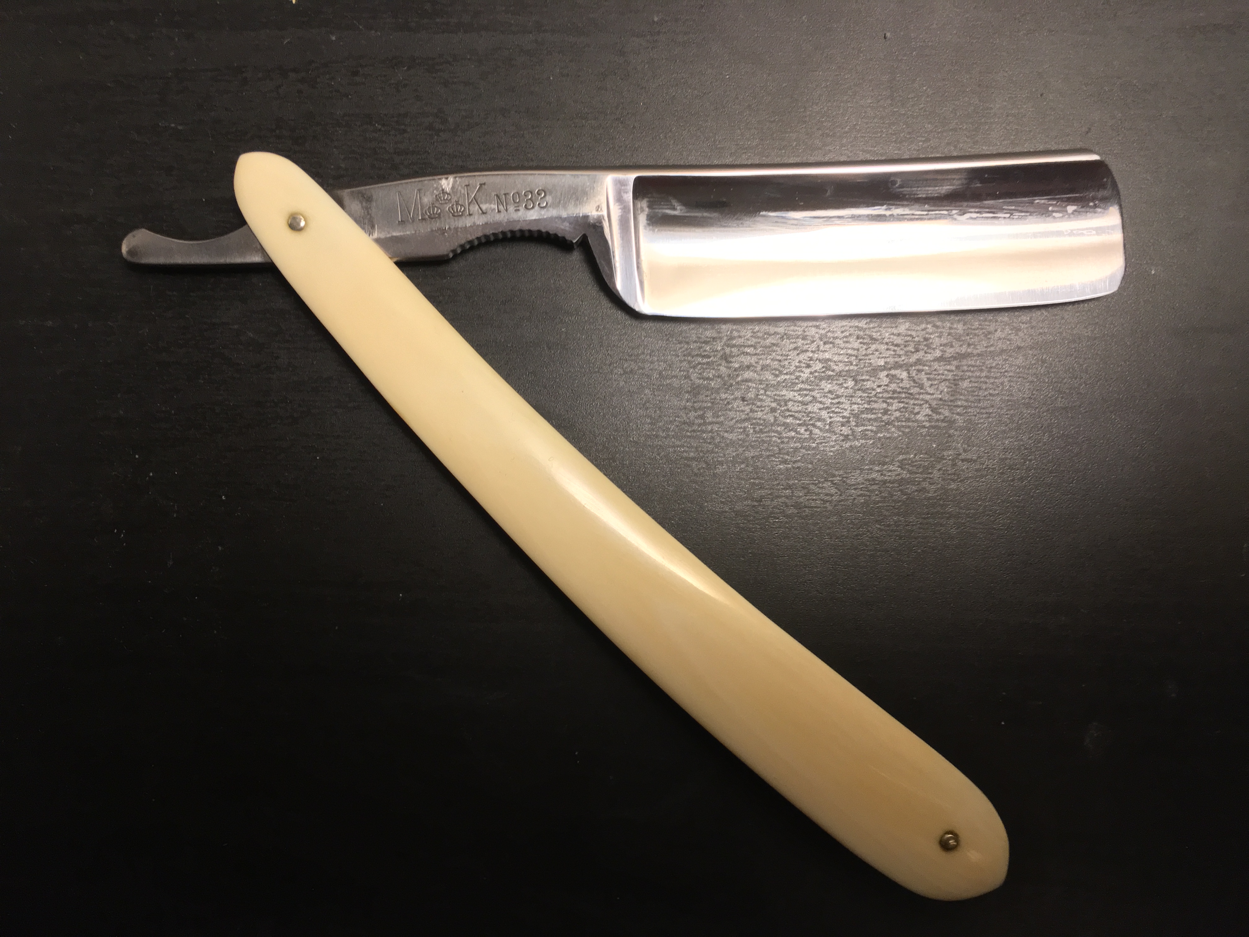 1) Mappin&Co- 5/8, манёвренный и очень тяжёлый для своих размеров клин с оправой из кости слона. При бритье вообще не чувствуется контакта с кожей, бритва будто бы парит