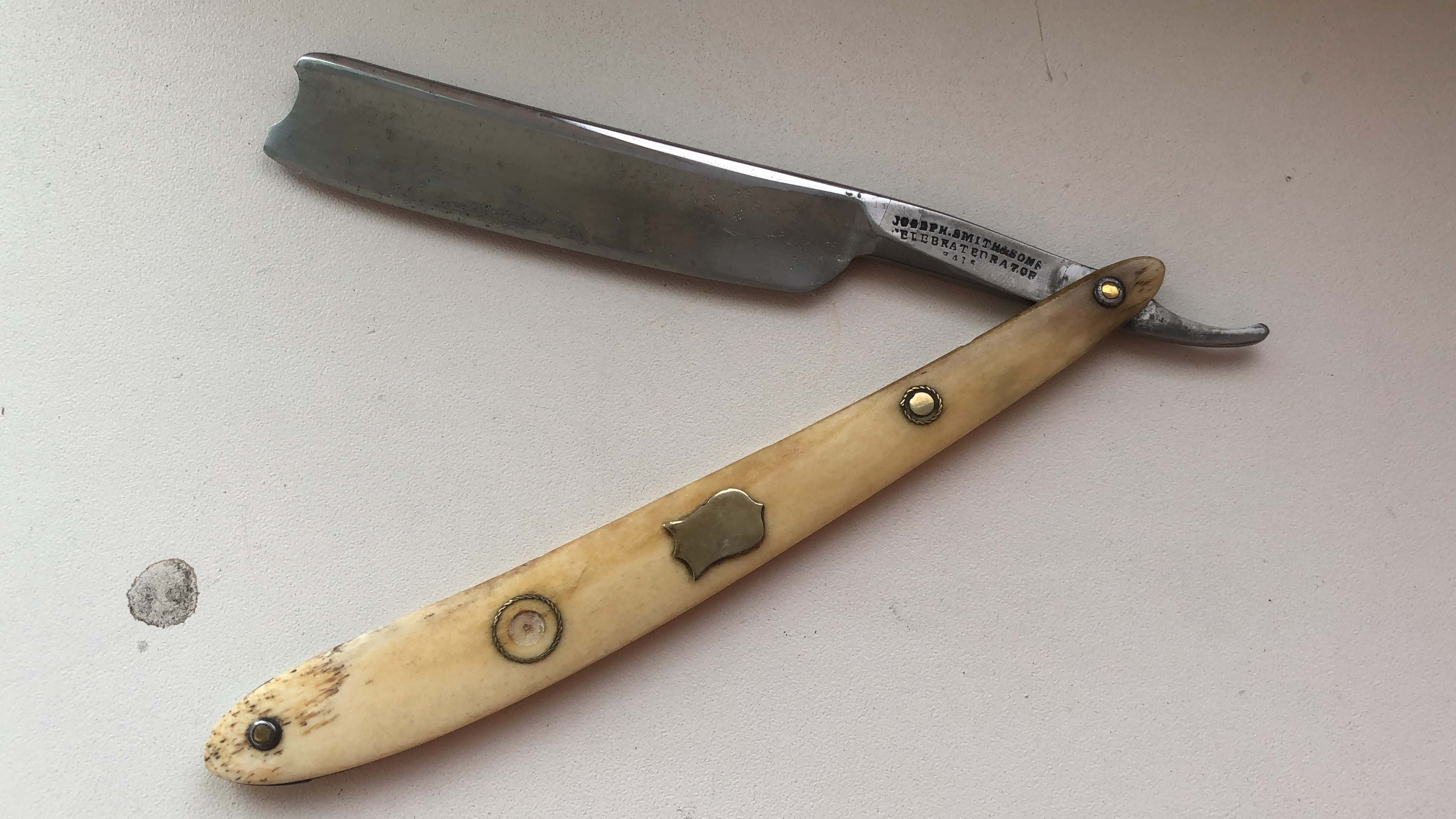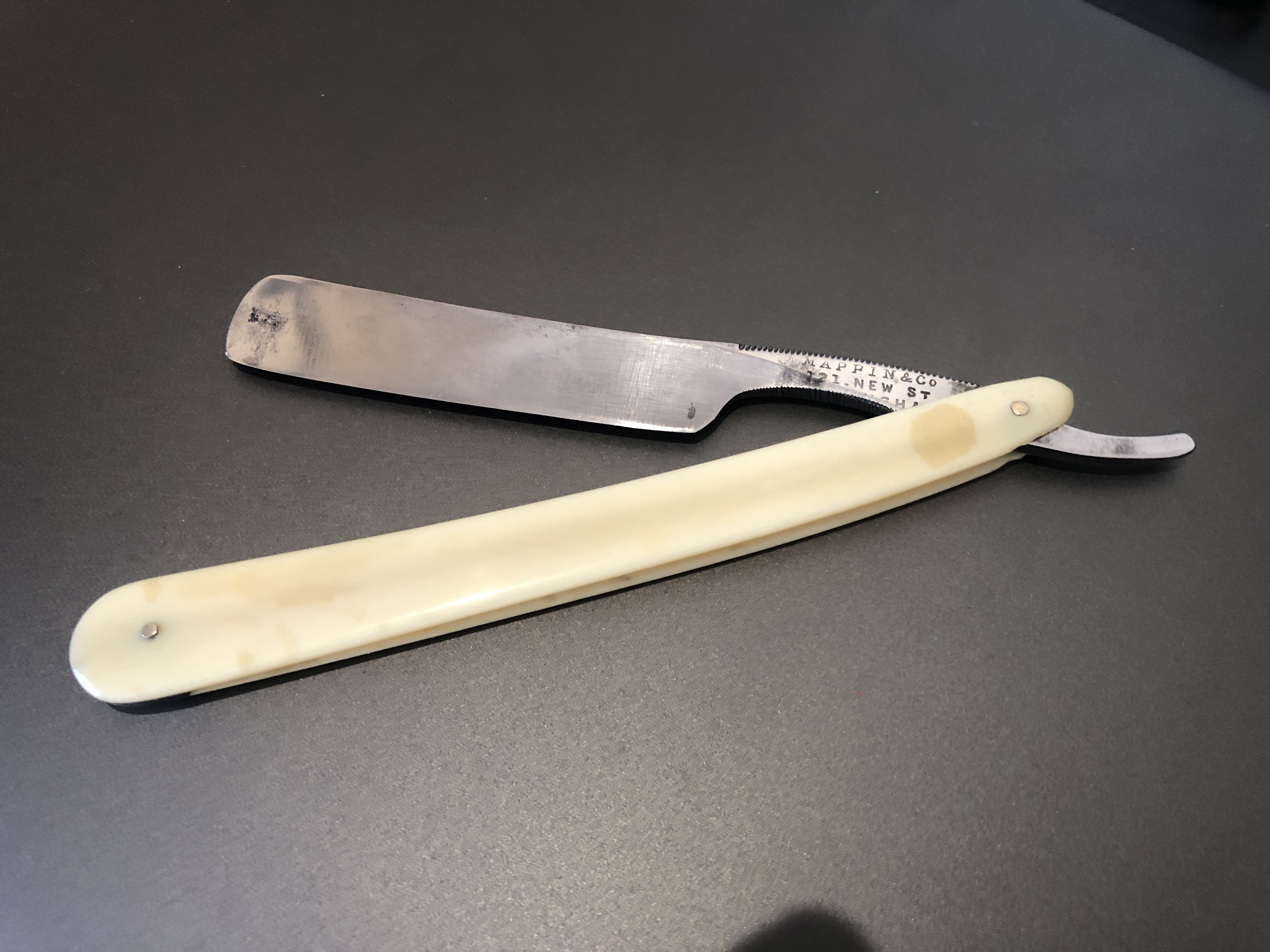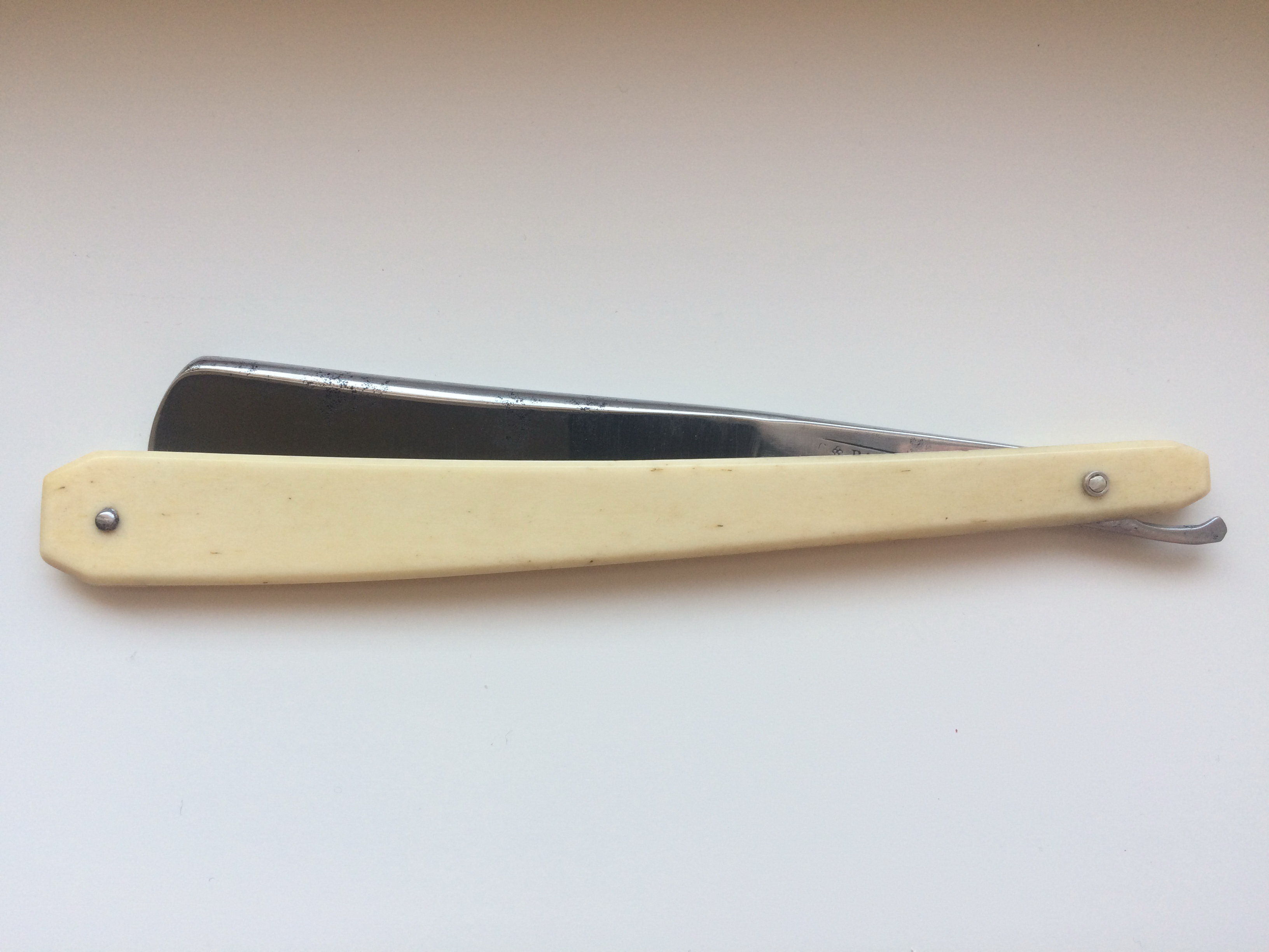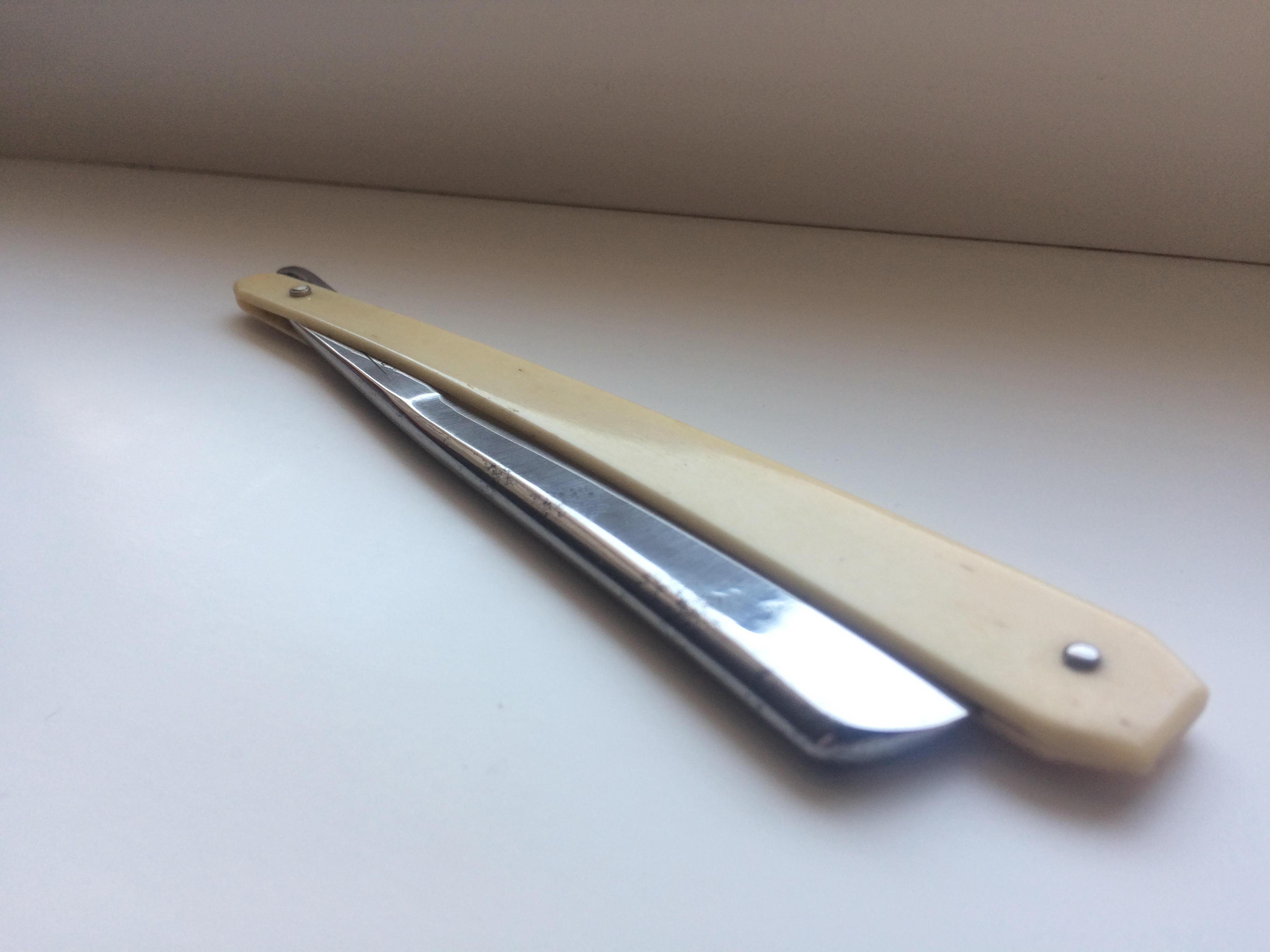 1) Joseph Smith&Son- 6/8, первый английский у меня. Люблю эту бритву за внешний вид и тактильные ощущения. Очень тяжёлый клинок с очень легкой почти невесомой костяной ручкой. Брился один раз ей. Лежит в коллекции чтобы было.
