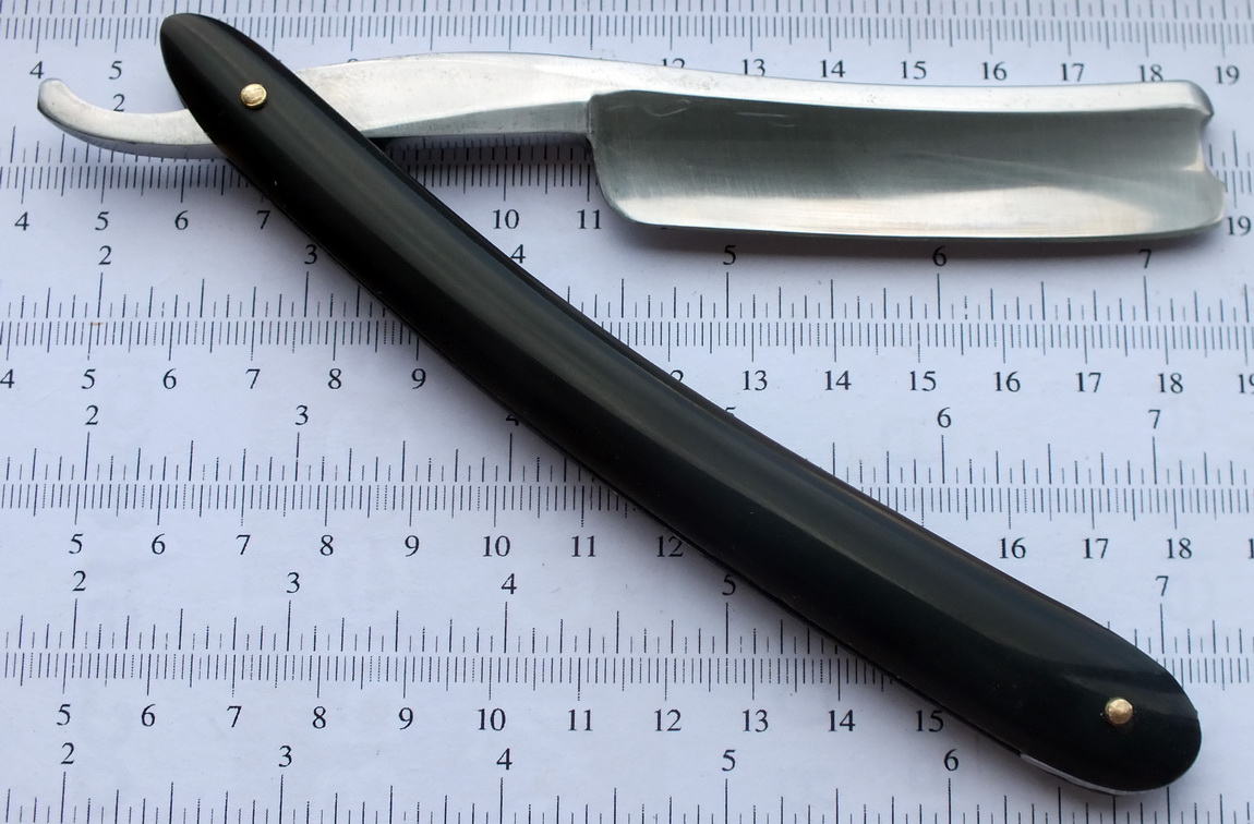 Бритва до... и после...Добрый вечер, Уважаемые форумчане!! Принесли мне на реставрацию бритву , что хотелось бы сказать, хочу обратить Ваше внимание на нюансы, точность травление рисунка, эстетику клинка. Это конечно мое субъективное мнение но есть чему поучится нашим мастерам которые делают бритвы, ручки. Да в процессе реставрации, мной была заменена ручка, клин и шайбы, ручка точная копия оригинала. Просто очень интересно Ваше мнение. Да чуть не забыл размеры: Ширина клинка