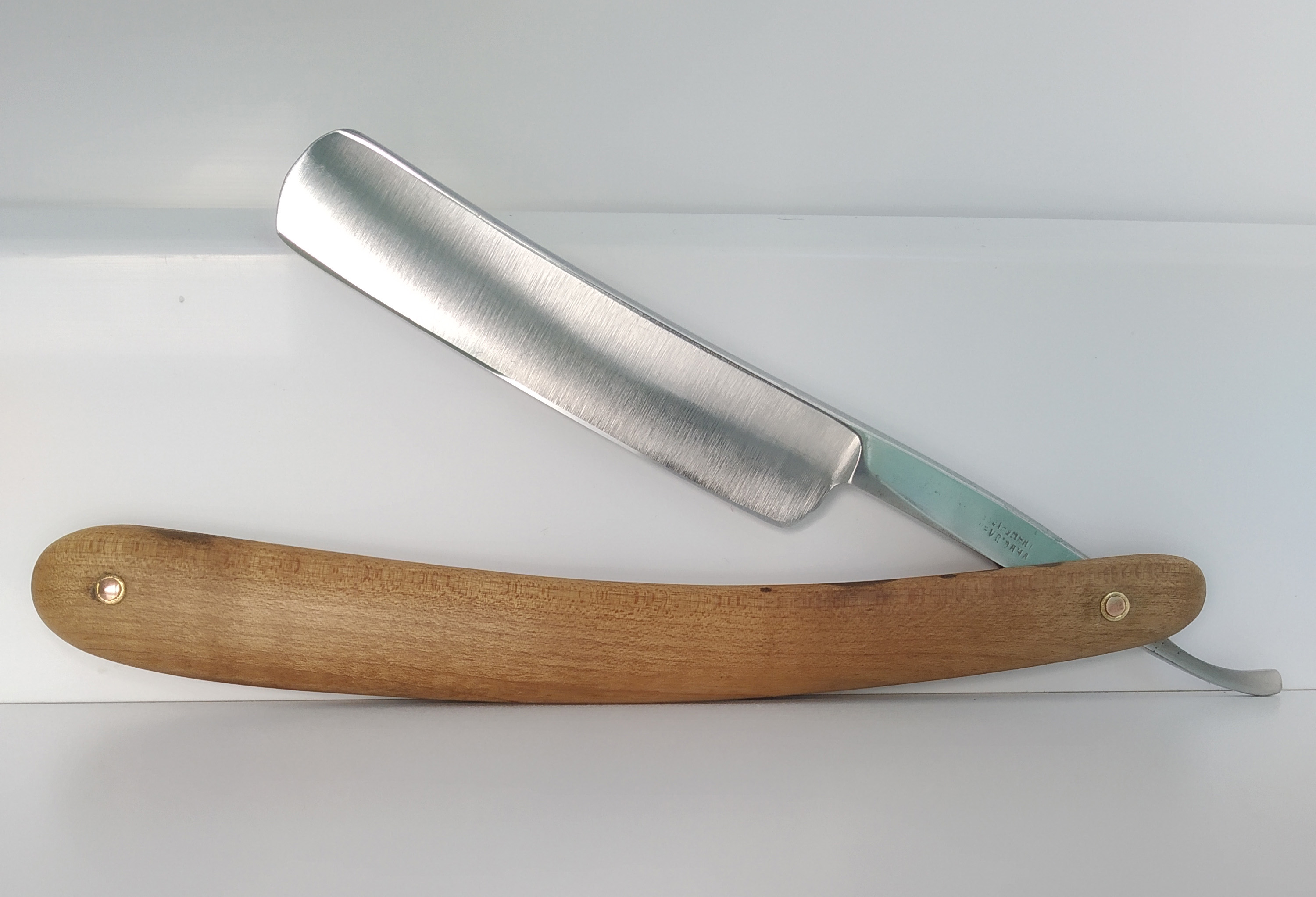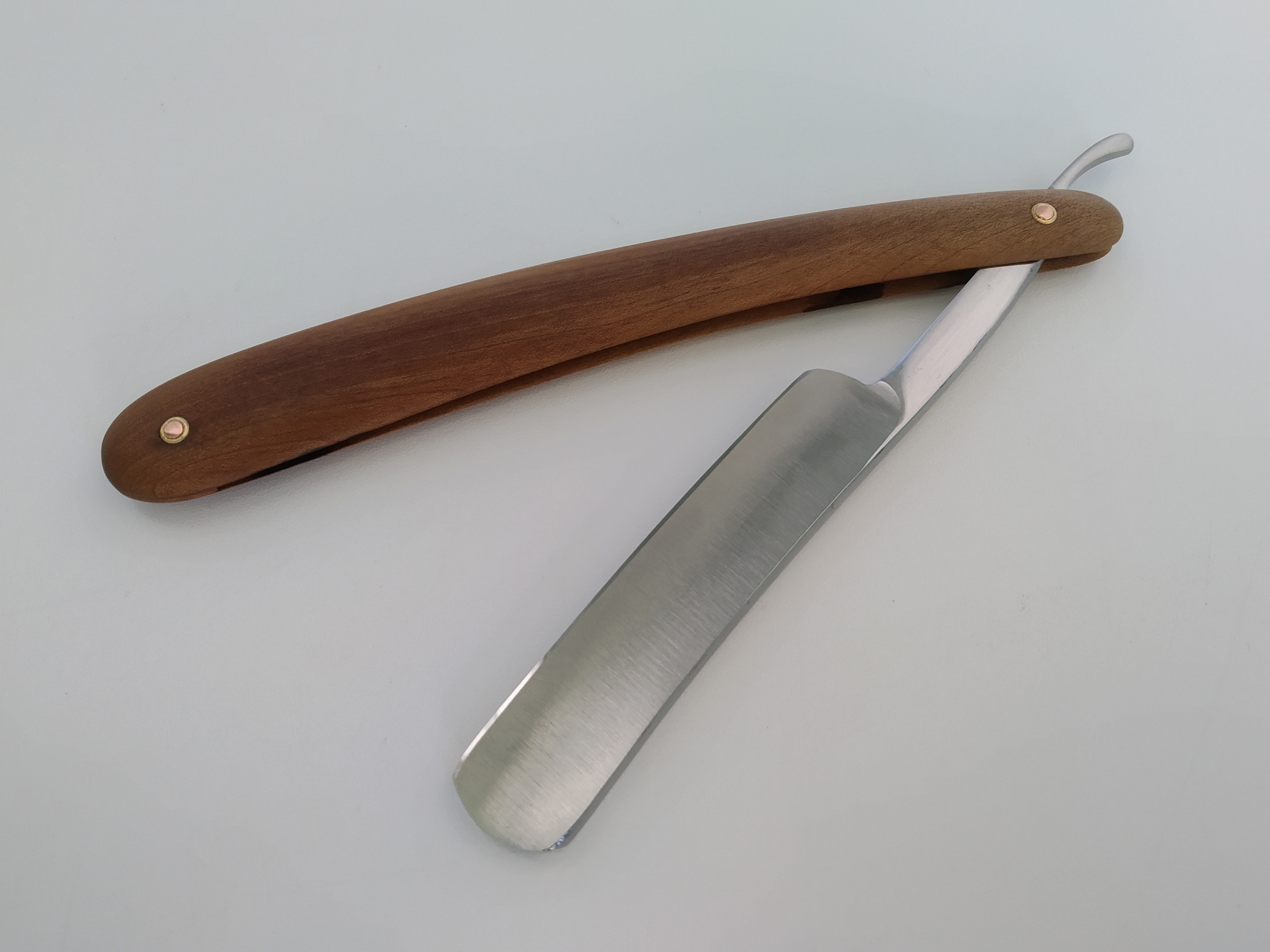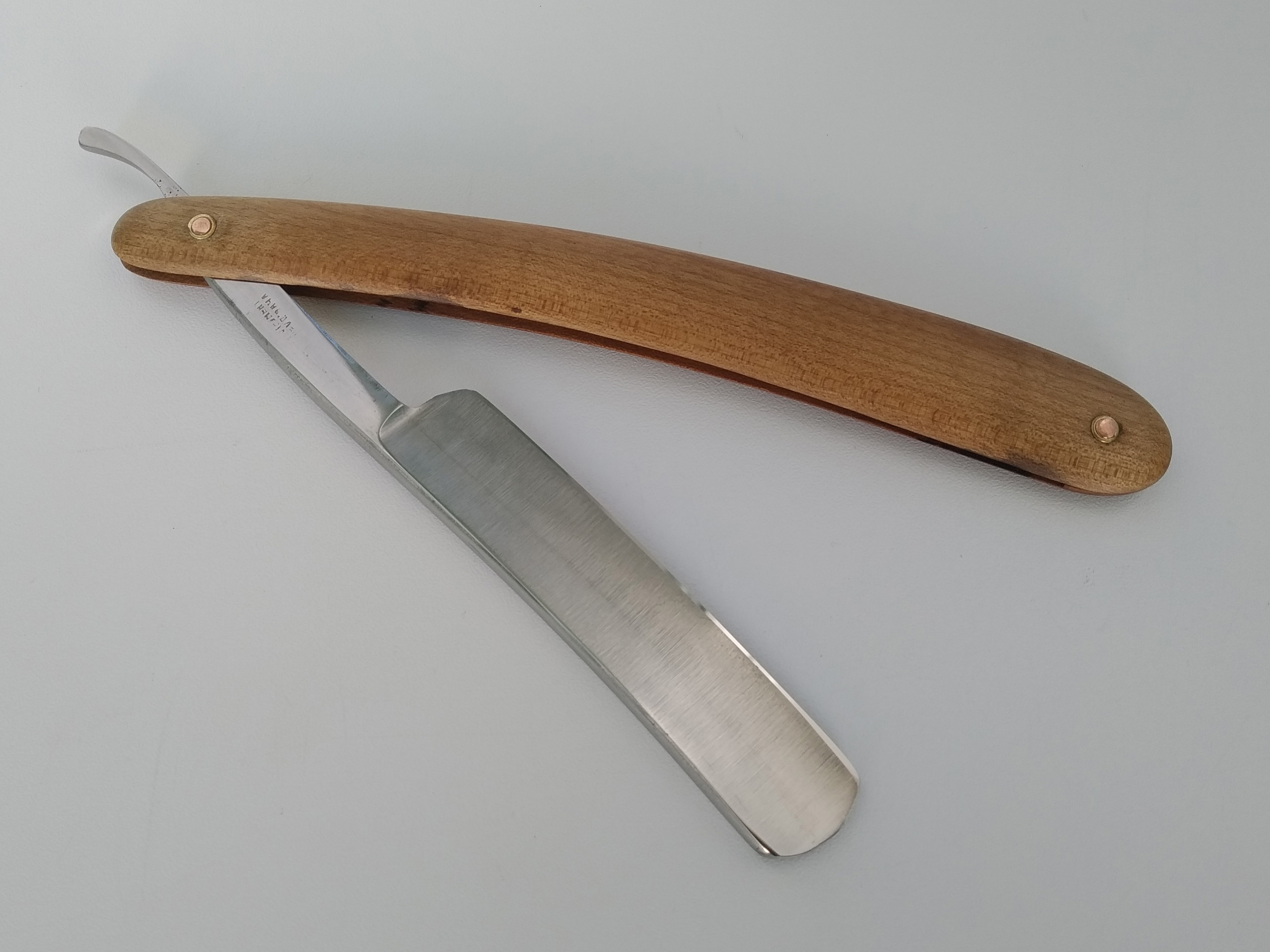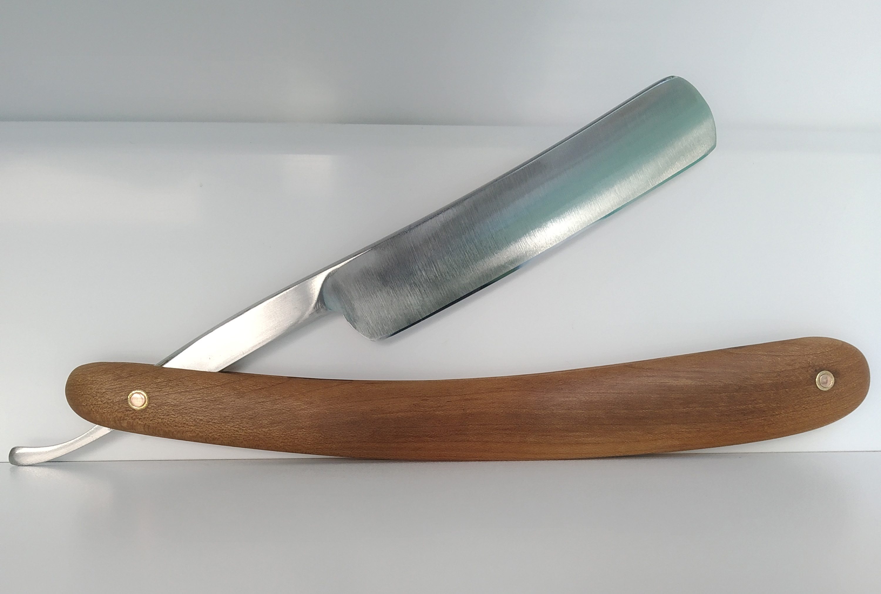 и замечательные изделия - приятно смотреть. По поводу последней его работы, без всяких обид - лично для меня показалось, что бритва стала слишком новой. Я хотя бы немного состарил эти новые заклёпки, уж слишком бросаются в глаза. Но это только моё мнение, у каждого своё виденье работы. Бесит, когда приходится пользоваться бритвой моложе себя...