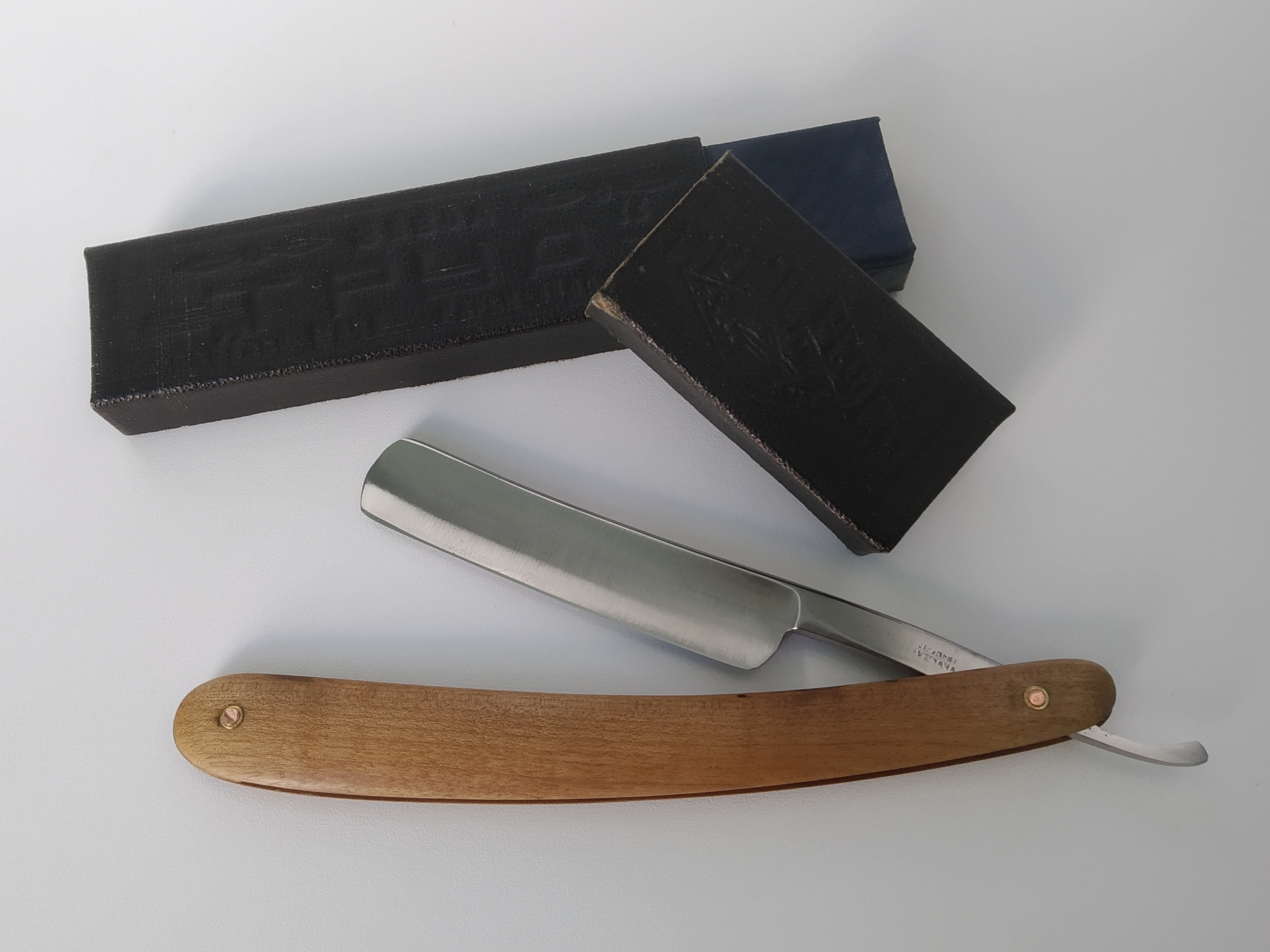 Батчер печальный с широким долом как у кавказской шашки. Оправа погрызена жучком-рогоедом, ну и раковины средней глубины. Протер тряпочкой, как просил хозяин. Оправу новую запилил. Заточил. В общем всё как обычно. Будет теперь батчер снова радовать глаз. 32 года активно мусолю харю клинковой бритвой