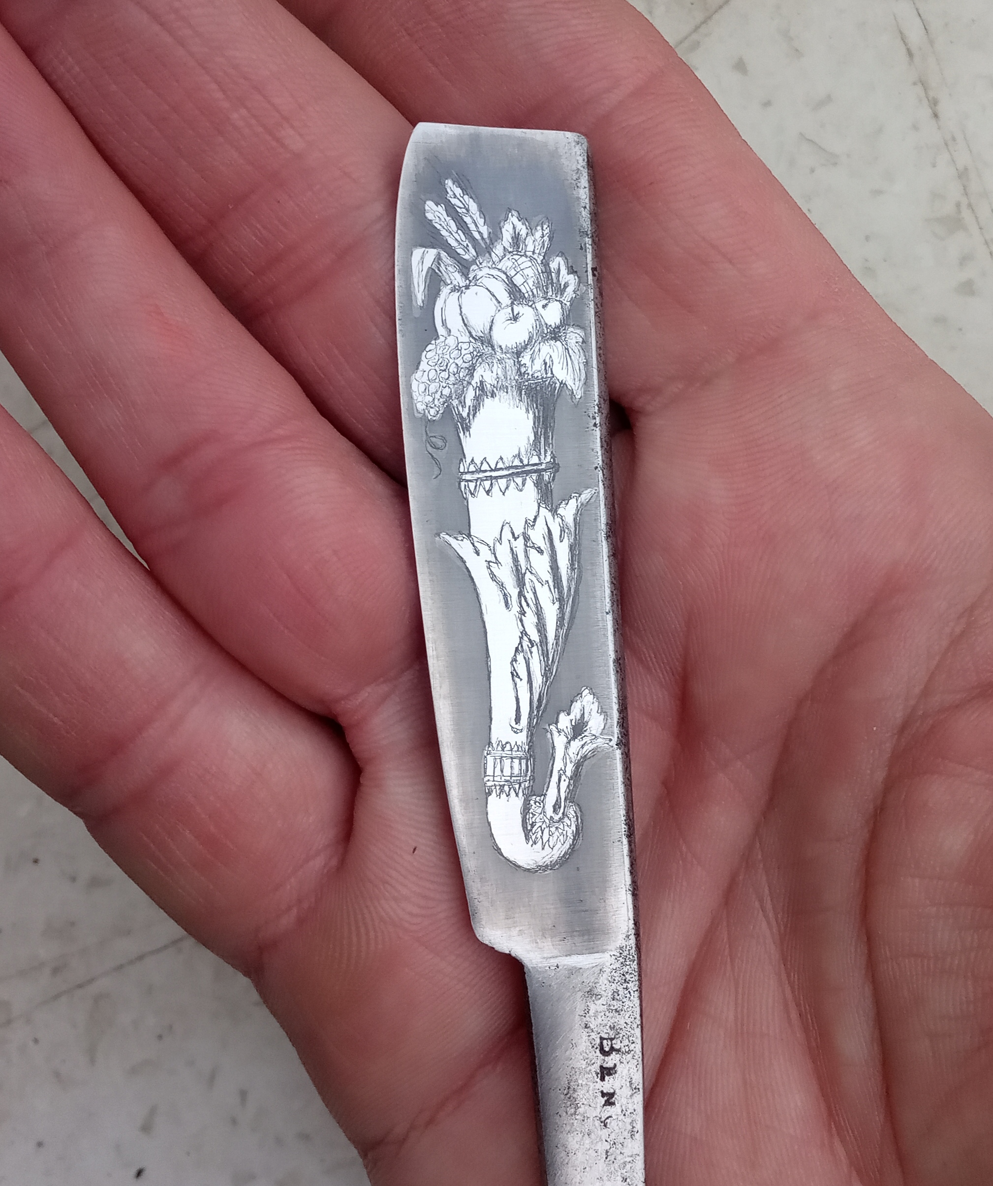 Травление клинка, восстановление рисунка.Восстановление рисунков на вачинских Гравюрах и Яхте.Два рисунка сняты с оригиналов, "Ласточкино гнездо" - нарисовано с нуля. Вживую рисунок не выглядит настолько темным, как на контрастном фото.