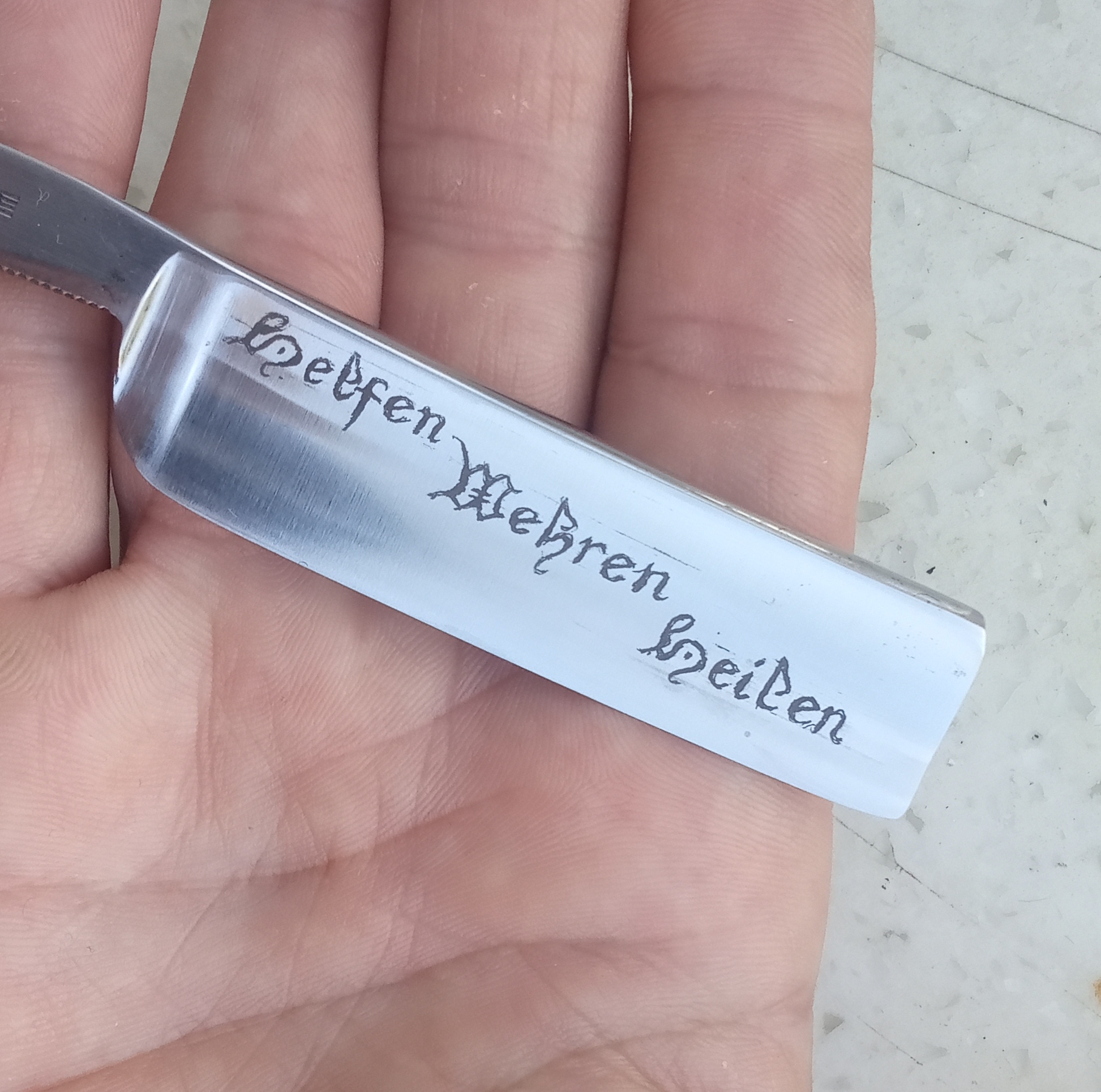 Травление клинка, восстановление рисунка.пользуюсь королем артуром от тараса. на рабочие качества бритвы травление не влияет от слова совсем. зато у бритвы есть душа.