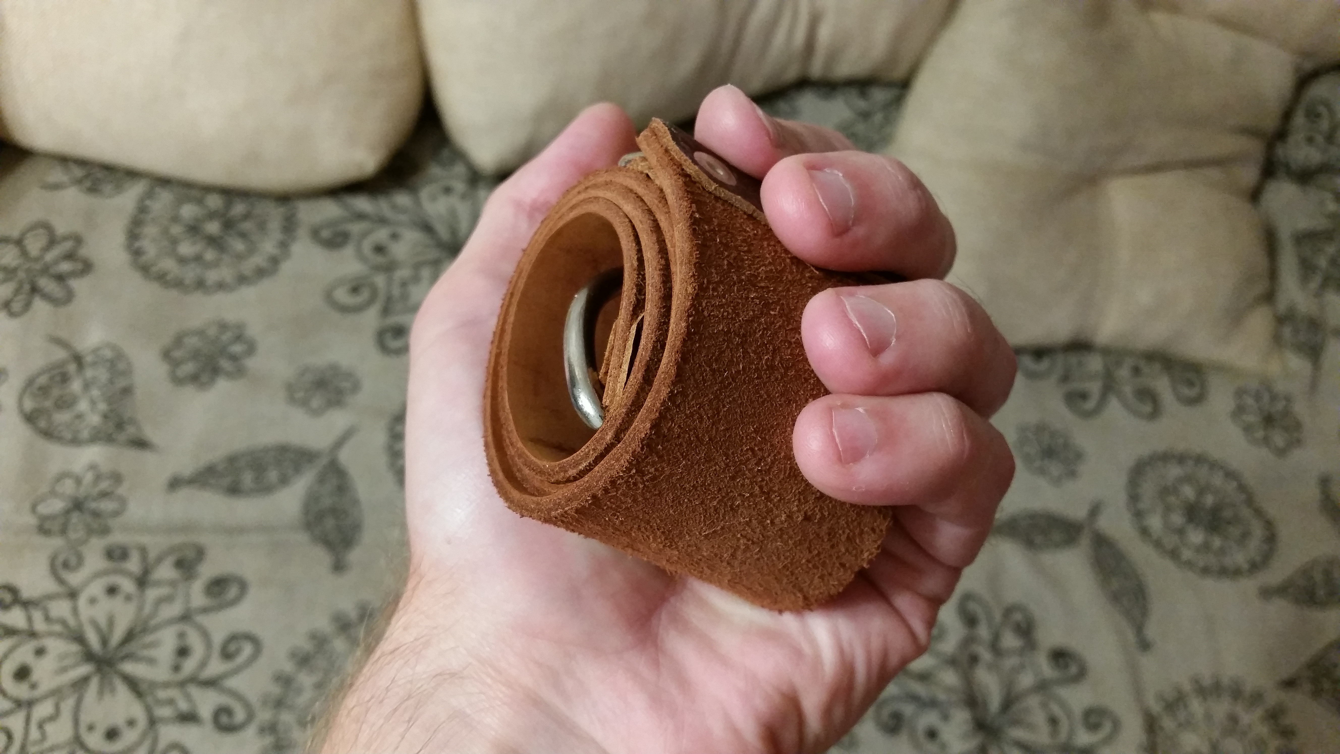 Изготовление ремней для правкиМое видение командировочного ремня, пусть занимает больше места, чем синт, но это кожа. Сворачиввется без последствий, на фото свернут бахтармой наружу, размер стандартный 500×51 мм, фурнитура так же стандартная