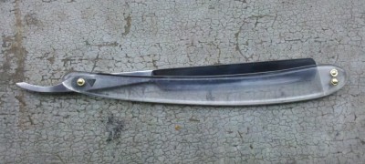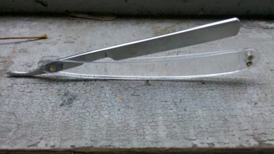 За останки спасибо доброму дедушке , есть тут один с кружкой шляеться. Кто ее уработал не известно , да же фото не сделал , но если очень надо на любом аукционе таких фото как грязи - народ думает что чем бритва более ржавая тем старше и дороже , тут до ржавчины еще добавилось пару сколов милиметра по 3 -4 глубины . Потому ширина уменьшилась до 11 мм , пропорционально уменьшился обух до 2.5 мм , по дороге исчезли все надписи . Вогнутость стала в районе 1/2 , осталось сделать надпись " Узкая" Материал ручки то же от дедушки - пластик какой то . И тот же дедушка предупреждал что не стоит из него ручку делать , рогов предлагал , отсыпать , но поскольку принцип " усерусь , но не покорюсь " никто не отменял , то я послушал и сделал по своему . Получилась гадость . Собственно и показываю только для того что бы больше никому не пришла в голову идея повторять этот эксперимент . Ручка была абсолютно чистая и прозрачная пока не поставили заклепки , в течении этого процесса она умудрилась поцарапаться вся и со всех сторон , хотя ничего абразивного в округе и близко не было . с заклепками то же начудили , но то мелочи - все равно новую делать . Из фотоапаратов один телефон , потому фото не сильно Если у человека нет чувства юмора , у него должно быть чувство что у него нет чувства юмора (с)