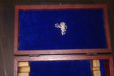 Есть у меня серебряный чертик. Хочу его прикрепить или на верхней части крышки или на внутренней. На данный момент мнение разделились. Поэтому прошу Ваших советов, как прикрепить лучше. Может быть еще есть варианты? Заранее благодарен. Вот варианты.