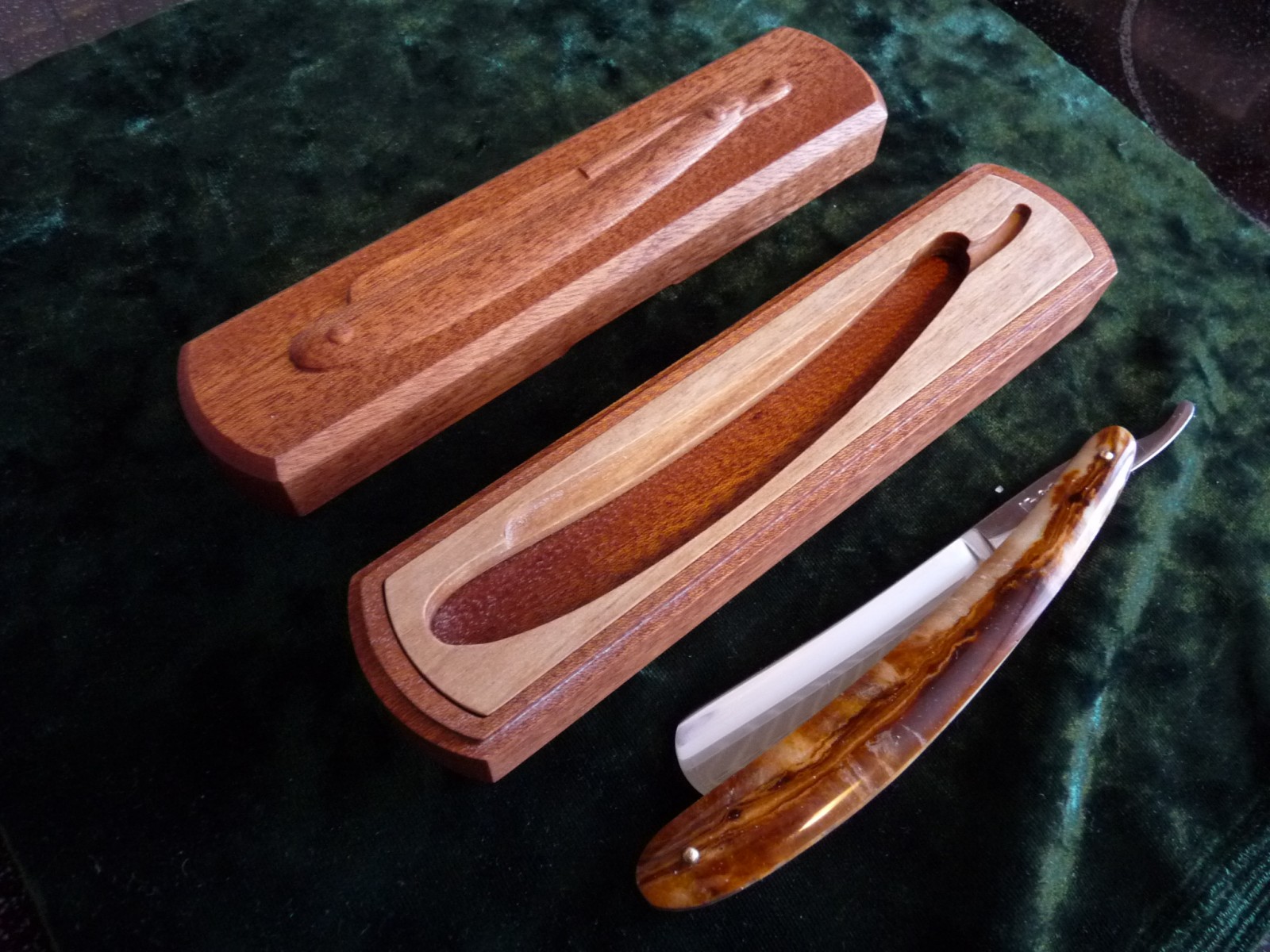 только я бы еще обратную сторону крышки облагородил мягкой тканью. И бритве будет приятно)) А на этой ткани можно клеймо свое ставить.