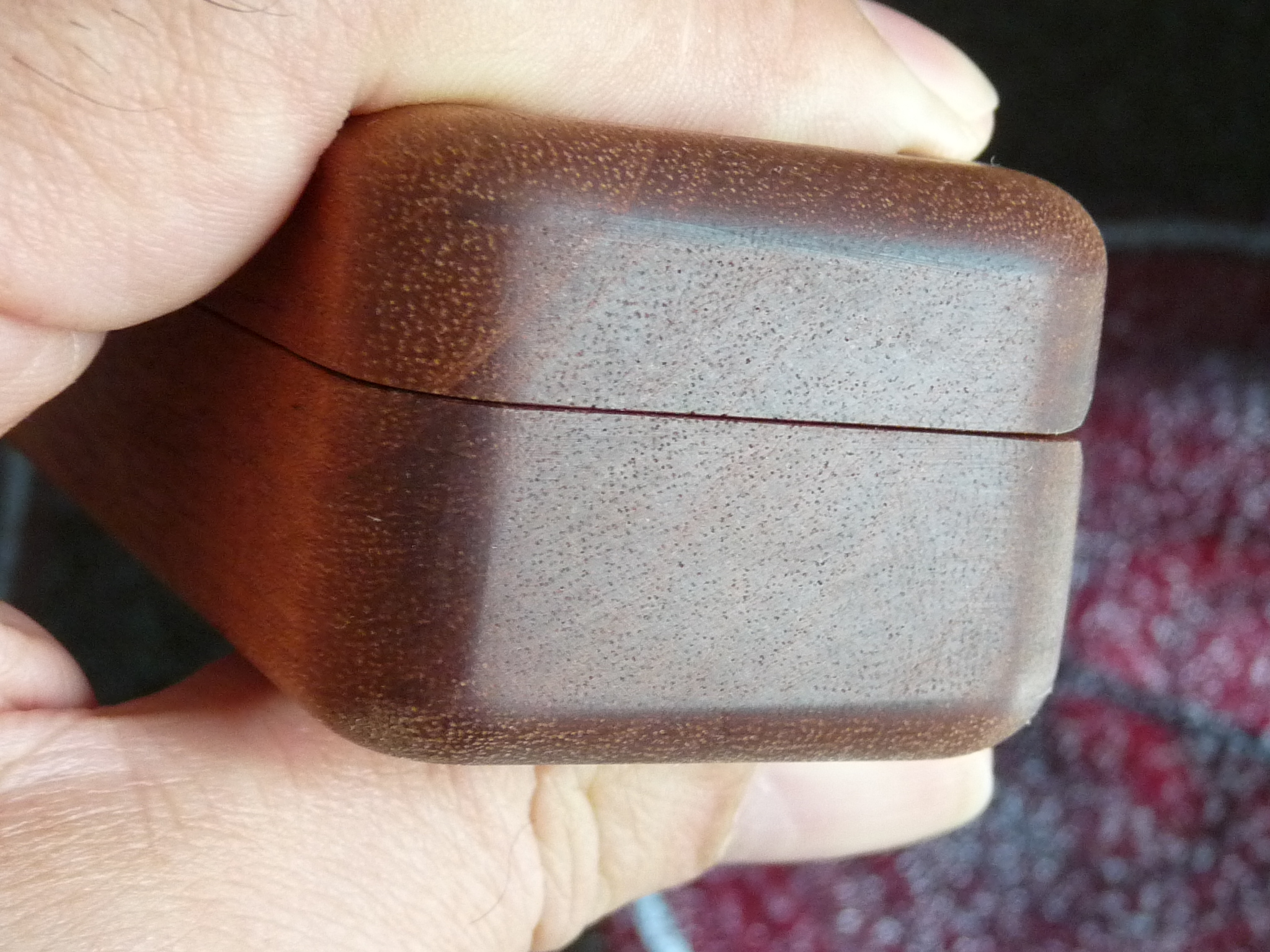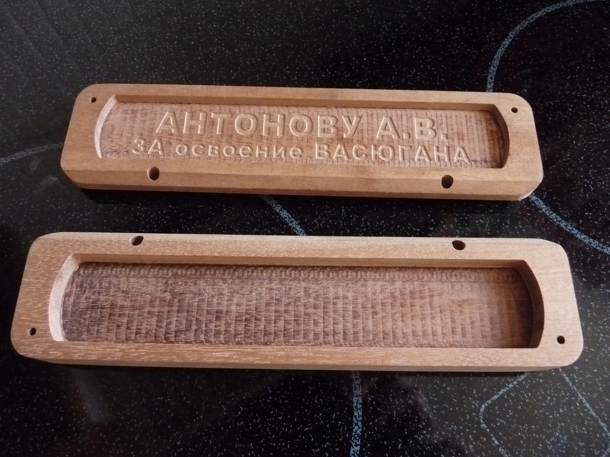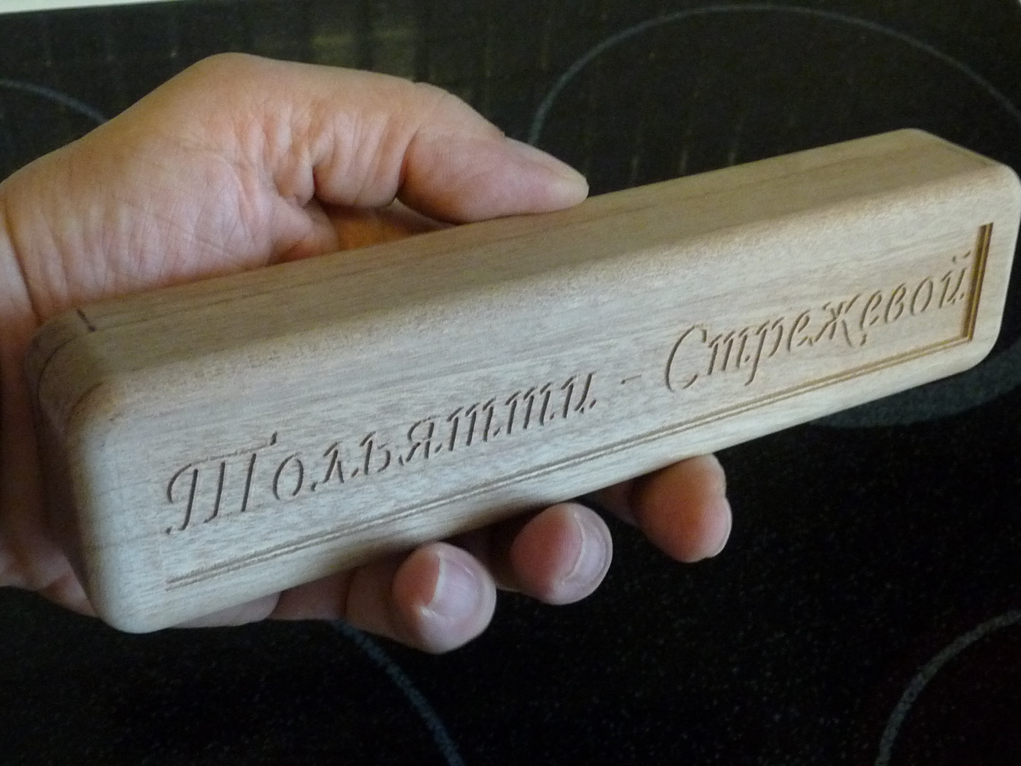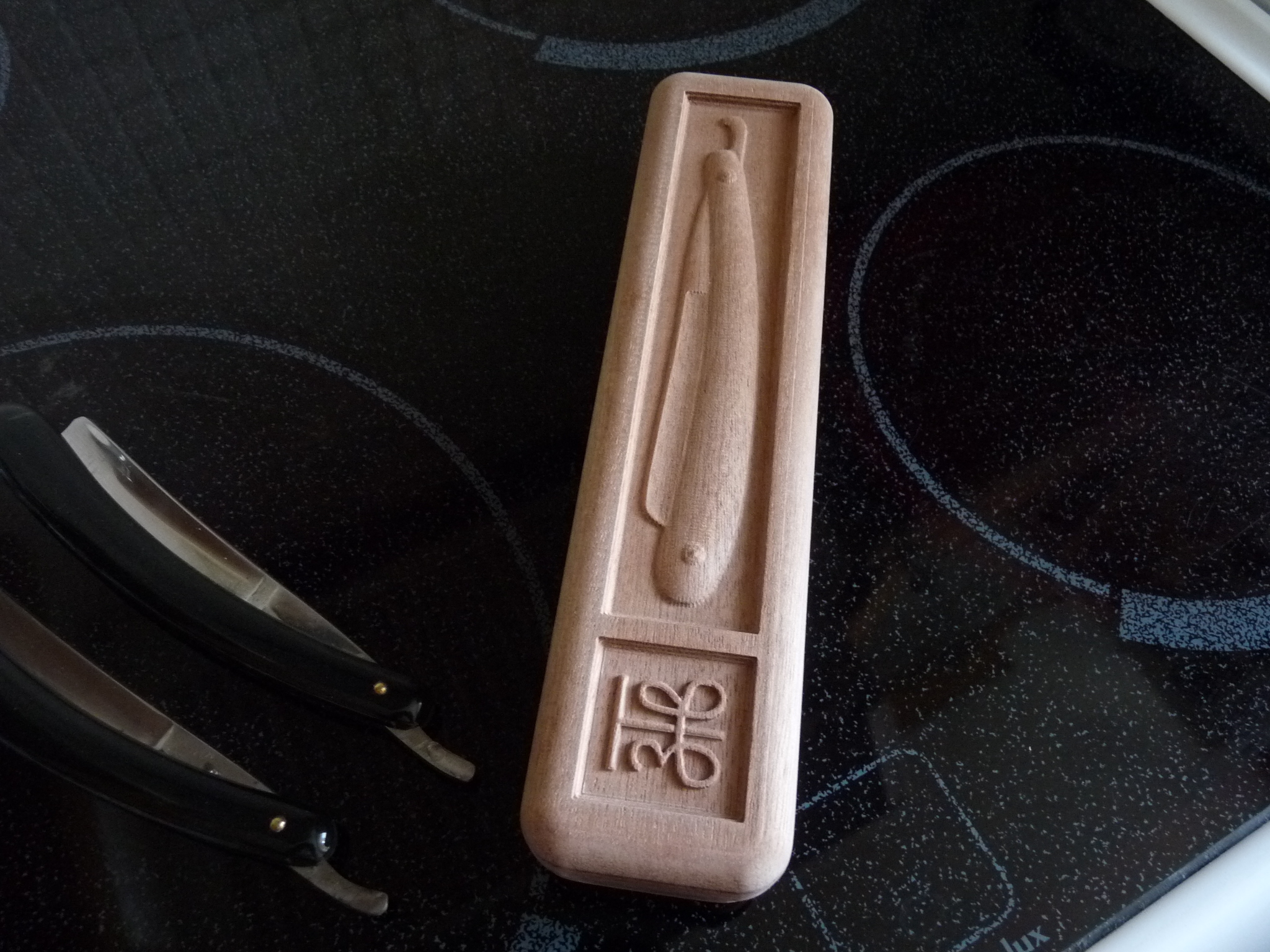 То есть постобработки ещё почти не было (кроме вкладыша), всё из под станка, ну заусенцы снял. Речь только об объёмах... ну красно дерево... Высота рельефа "бритва" - 3,30мм, высота бортика - 3,0мм, то есть "пины" выступают над бортиком, "ручка" - нет. Сделано намеренно так. Постараюсь расположить магнитики так, чтоб половинки футляра не притягивались, а отталкивались! То есть, возможно, открывая замочек, крышка сама собой будет приподниматься и висеть в воздухе... на пару мм где-то...
