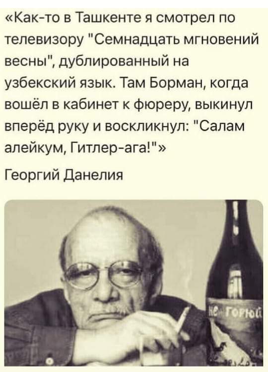 Анекдоты и приколы не в тему:)кстати, это не анекдот. Я тоже видел 17 мгновений на узбекском. Ржал весь Ташкент))