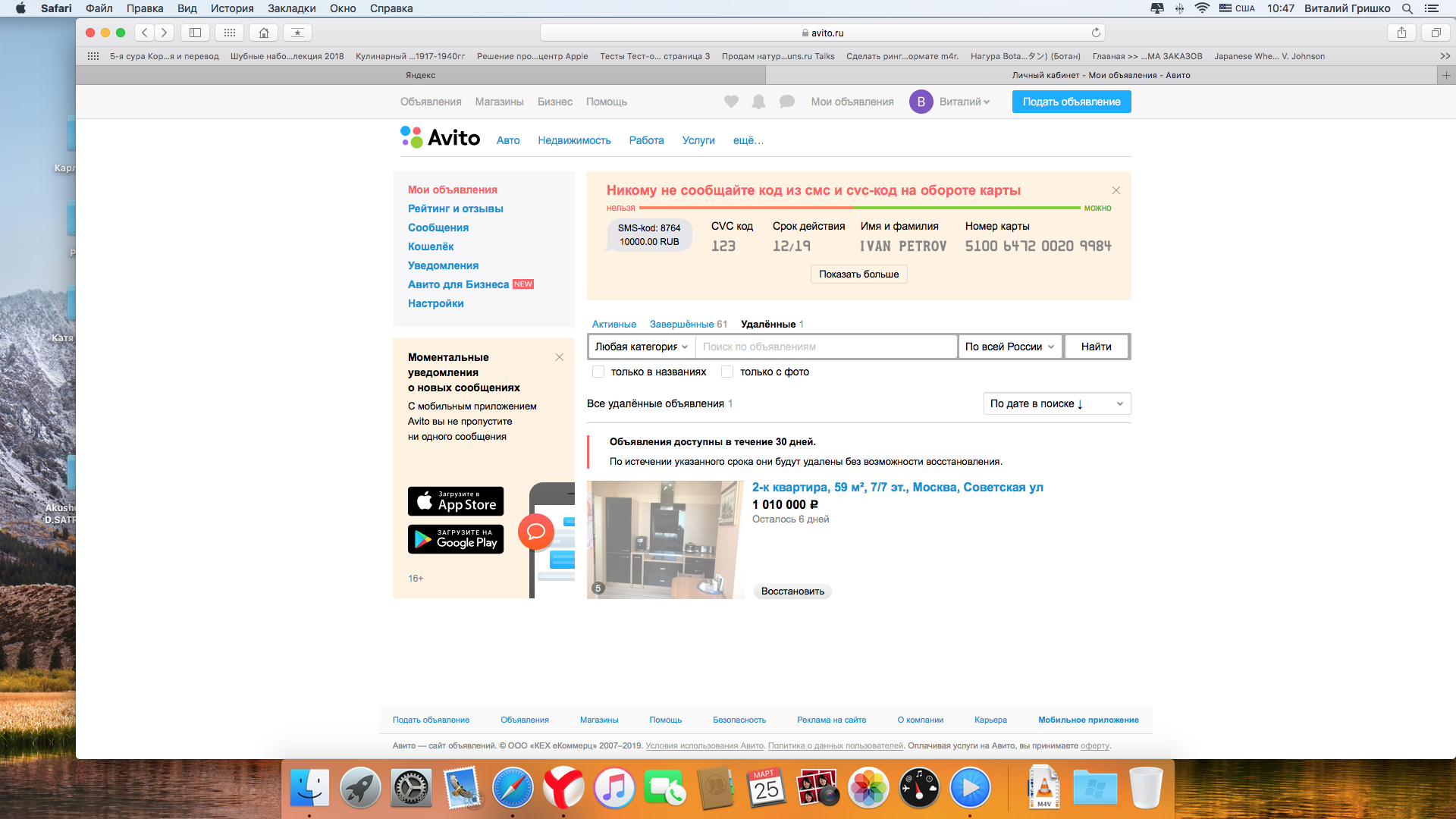 Авито тема мутная. Кто продает ХЗ! Здесь с моего акаунта выставили однокомнатную квартиру в Москве.  Представляете? И с личного кабинета не удалить нихрена! Пришлось звонить в службу поддержки а то так затрахали звонками по поводу дешевой квартиры в МАскве.
