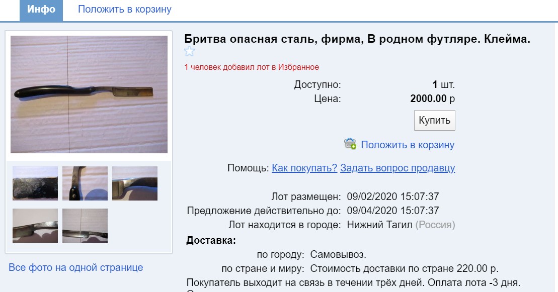 Re: Прошу оценки. Бритва OVBЛюбопытно, на какую примерно сумму рассчитывают продавцы подобных "уникальных" экземпляров? (Аукционы не мониторю, потому не знаю.)