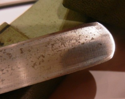 Re: Помогите оценить бритву, "Чайка", 1967Это результат не аккуратной заточки немного кривой бритвы )
