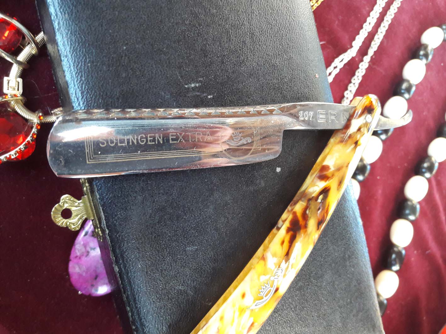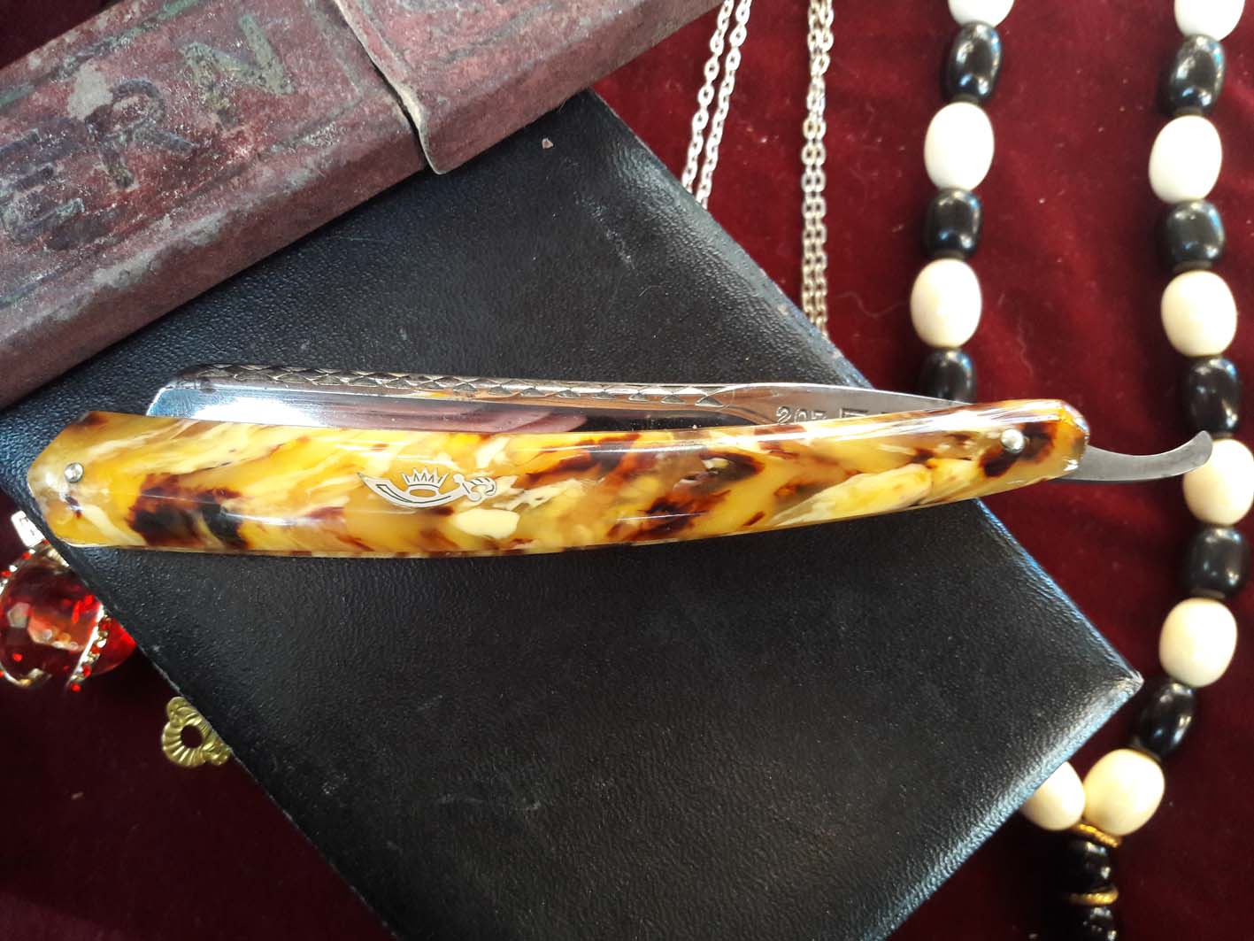 Всё чин чинарём.. Геометрия на уровне. Всё на месте - шайбочки, заклёпочки без изьянов... Все клейма, просто как на своих местах. Эмблемка на ручке стоит как влитая и без перекоса. Чехол на месте. Но надпись.. может кто переведёт? ) Бесит, когда приходится пользоваться бритвой моложе себя...
