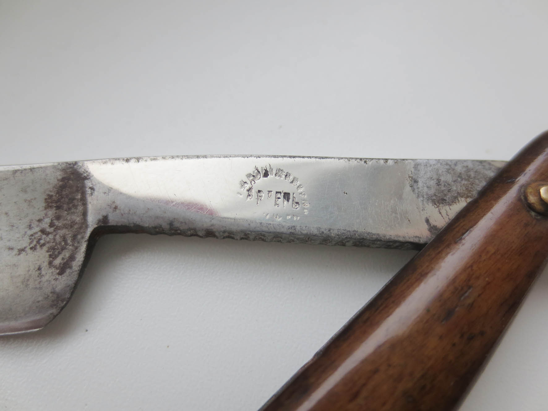 В середине слово АРТЕЛЬ, а вот вокруг непонятно и ниже тоже вроде горизонтальная надпись. Заклёпки, ручка родная. Может по форме клейма кто вспомнит или по ручке? Не артель инвалидов ? Похожа на эту, но шрифт не тот или она? Давыдово, Артель, достижение... http://britva.ru/forum/viewtopic.php?p=152401#p152401" onclick="window.open(this.href);return false; Бесит, когда приходится пользоваться бритвой моложе себя...