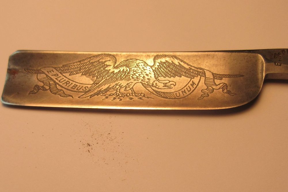 Re: Помогите опознать бритвуОрёл на лезвии - лишь символ с надписью "один из многих". Такую надпись и рисунок стали ставить как только появилась мода. Принадлежностью к конкретному производителю не является. Травили подобное и англичанине, и немцы, и американцы. Вообще, орёл с подобной надписью - символы герба США. Поэтому, подобное могло рисоваться для экспорта. А, вот, у ERN логотип в виде пальмовой ветви и полумесяца имеется, правда, в несколько другом начертании.
