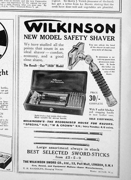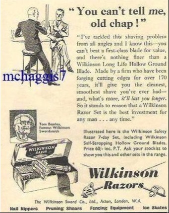 Re: Г-образный станок Wilkinson Sword Co.Ок    Волхвы не боятся могучих владык, А княжеский дар им не нужен; Правдив и свободен их вещий язык И с волей небесною дружен. А. С. Пушкин. Песнь о вещем Олеге. Re: Г-образный станок Wilkinson Sword Co.Какие-то микроскопические картинки.  В старых оцифрованных газетах такой рекламы много. Если хочешь, всё, что буду находить, буду выкладывать в твою ветку?