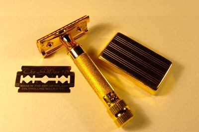 т образная бритва и виски=чистое бритье(это как с женщиной:чем больше пьешь,тем она красивее)