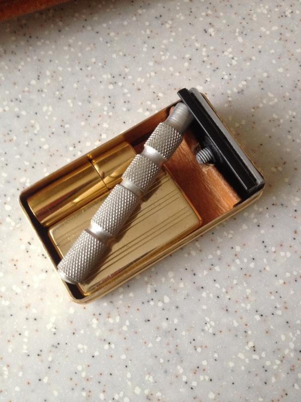 Re: Футляр для Т-станковВот отцовский несессер 60-х годов. Станок не родной - у родного ручка пополам развинчивалась и он замечательно укладывался поверх коробочки для лезвий. Маленький контейнер - для кровоостанавливающего карандаша. По-моему очень грамотная организация пространства в футляре для станка. Две больших типа тубы - для помазка и для мыла-стика. Насчет мыла сообразил только недавно, когда приобрел арко в стике.