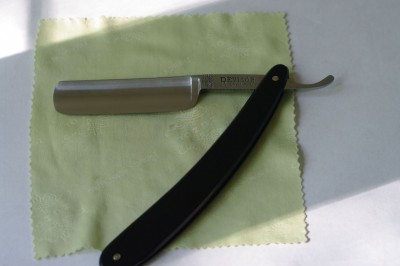 Re: Выбор бритвы, помощь, консультация.Хочу поделиться опытом выбора своей бритвы. Являясь "счастливым" обладателем китайской бритвы Титан, и твердо решив для себя что бритье клинком - это мое стал искать себе бритву, которая бы стала для меня основной. Мой выбор пал на классическую немку из Золингена. Через неделю (которая мне показалась вечностью) после оформления заказа я наконец-то ее дождался. Бритва из традиционной углеродистой стали 6\8 и вогнутостью 1\1. В первый раз взяв в руки, сразу оценил качество "немецкой сборки" ))) В отличие от Титана, которая люфтит и при неосторожном закрывании, может кромкой врезаться в рукоять, тут идеальная центровка, ход клинка при открывании\закрывании чуть тугой и плавный.