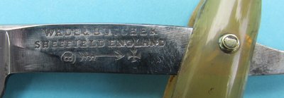 Первая симпатичная и, по многочисленным отзывам, популярная марка WADE & BUTCHER немного меньше 11/16" Мои мысли "за": это же Шеффилд! (Батчер), вроде бы сечение в форме клина обладает какими-то положительными свойствами.. Минусы: хохлома на клинке... Если его полировать, вероятно сточится...