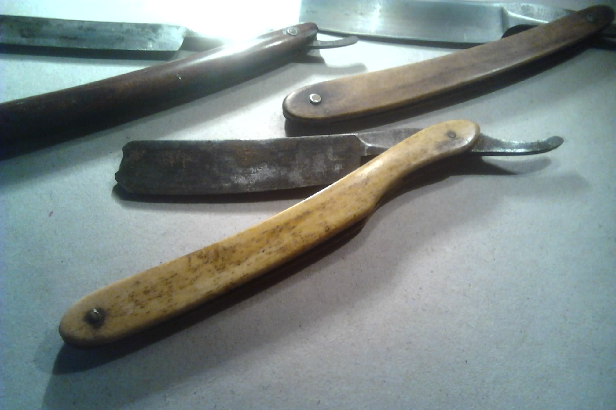Доброго времени суток!! Нашёл у себя в закромах такую бритву. Прадед ей брился. Хочу её отреставрировать и бриться, но поскольку опыта в таких делах не имею - боюсь испортить старинную вещь. Рукоять походу из кости, заклёпки разболтаны, пара мелких зазубрин, подстёрто клеймо (кстати, гербового штампа нет, как на фотографиях выше). Мастера, отзовитесь!
