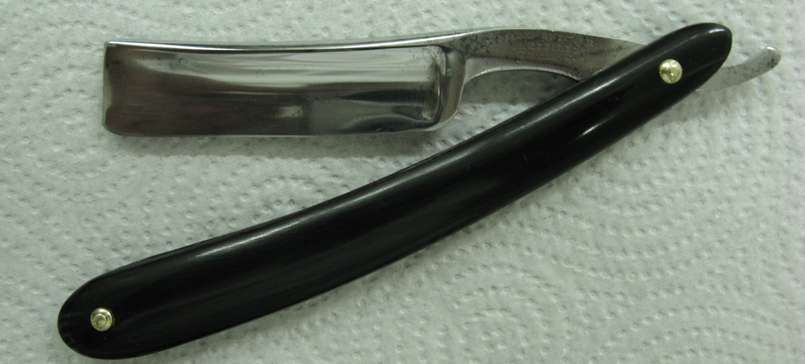 Размер ближе к 5/8. Бритва заточена и промаслена для защиты. Крайне деликатная бритва во всех отношениях. Я зову её "бритва для второго прохода" - острая, маневренная и с хорошим откликом. Очень трудно порезаться - не объяснимый для меня парадокс.
