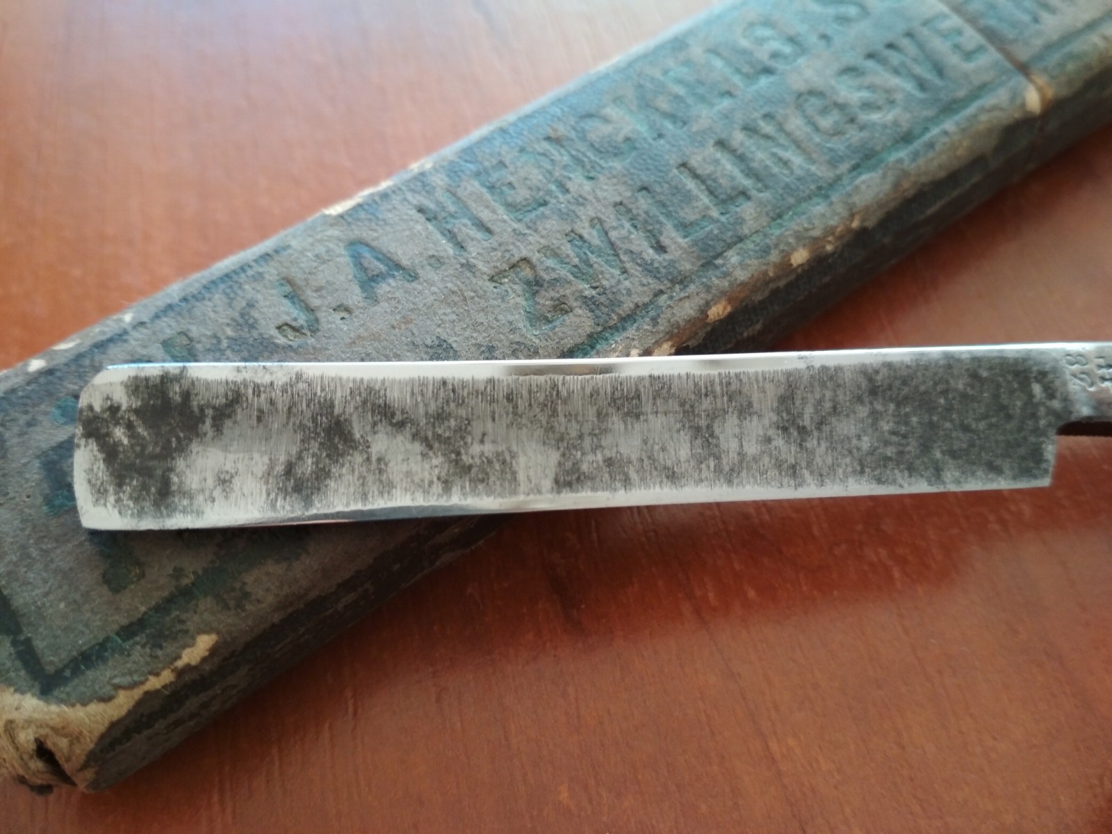 По поводу того что клинок со сколами и дикой линзой брОет отлично, пардон за мой французский, усомнюсь. Сошлюсь на свой авторитет и опыт более 26 лет бритья разными бритвами. Чай не последний камрад в бритвенном сообществе. Отлично бреют старые англичане, а Цвиллингсверк и новый не брил отлично. Всего лишь хорошо. Покалеченный, отпущенный и залинзованный он тем более не будет брить хорошо, не говоря про отлично.