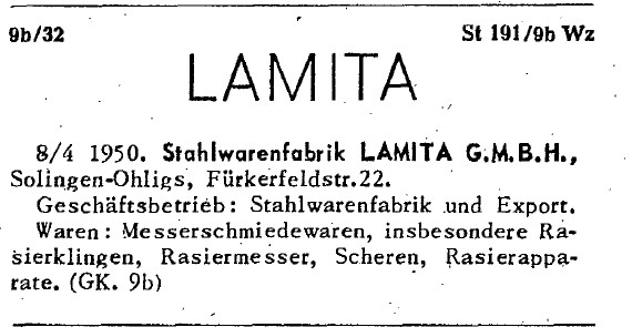 Stahlwarenfabrik LAMITA G.M.B.H., Solingen-Ohligs, Fürkerfeldstr.22.