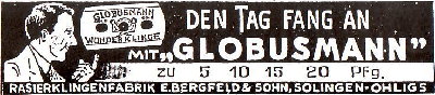 Модное слово "слоган" на рекламе: "День начинается с GLOBUSMANN" И ещё основатель фабрики - Эдмунд Бергфельд. Ремонт опасных бритв, звонить с 11-00 до 23-00, +79267729357, (whats app, telegram, VK), спросить Олега.