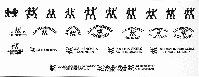 Логотипы: тройняшки (1895 № 7116); близнецы между двумя деревьями (1895 № 7125); отдельная фигура (1895 № 7130); «четверняшки» - четыре близнеца (1895 № 7131); отдельная фигура с алебардой (1895 № 7135); различные вариации близнецов (1895 № 7175, 1898 № 28914, 1904 № 71482); J.A.HENCKELS над словом SOLINGEN рядом с близнецами (1898 № 32620); J A HENCKELS, написанное по дуге над словом SOLINGEN, также написанным по дуге, в центре между словами близнецы (1898 № 32621).