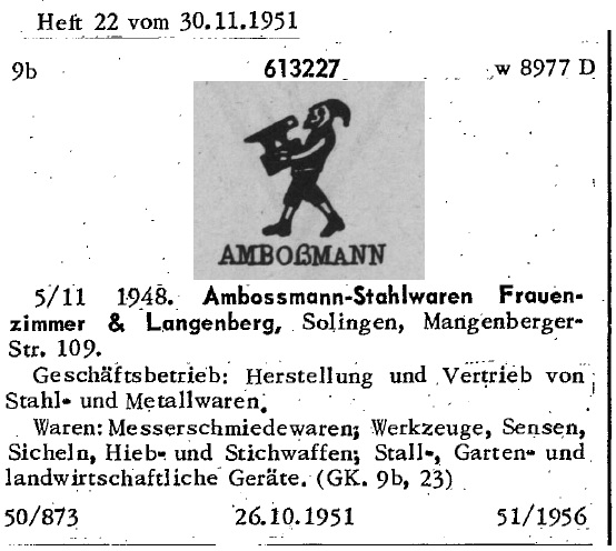 Ambossmann-Stahlwaren Frauenzimmer & Langenberg, оставаясь по тому же адресу.