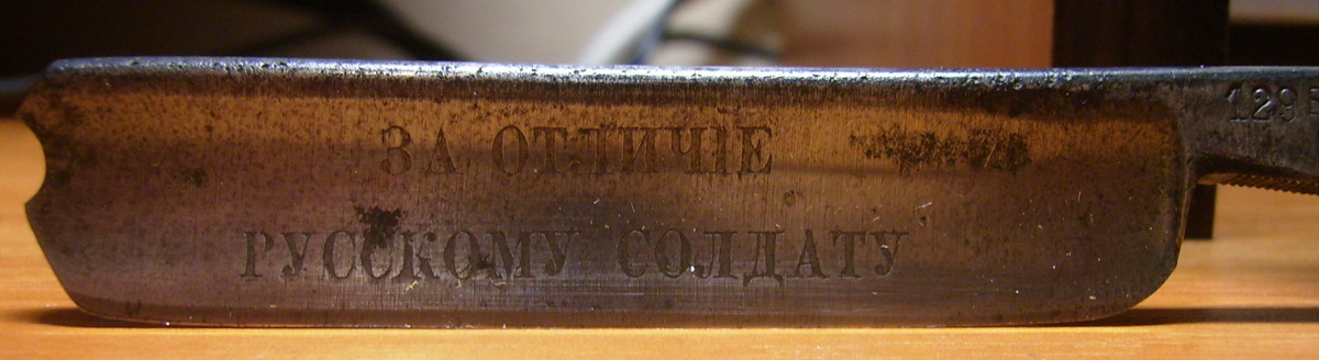 Для такой ветхой и изношенной бритвы ручка слишком нова и хороша. Да и заклёпки слишком свежи.