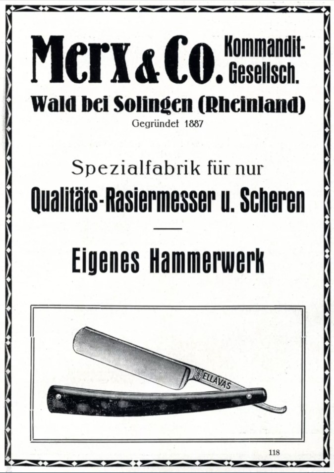 Судя по надписи Г.А. МЕРКСЪ ВАЛЬДЪ-ЗОЛИНГЕНЪ 5-ти лътняя гарантiя фабрика производила бритвы для России в какие-то годы ранее 1917-го.