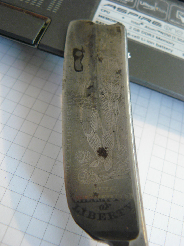 Re: "Frederick Reynolds", Sheffield. (!*)Неплох.. Взял на Ебее за 40$. Фото у лота были плохого качества, а я что то бдительность потерял. Привык, что всё в неплохом состоянии приходило. А тут получаю, ОППА!! Обушок какой-то очень нехороший человек на наждаке точил, непонятно с какой целью. Расстроился очень.. Но потом почистил, полирнул, поглядел, вроде ничего, сойдет. Заточилась бритва вообще без проблем, и бреет отлично. В общем сойдёт.