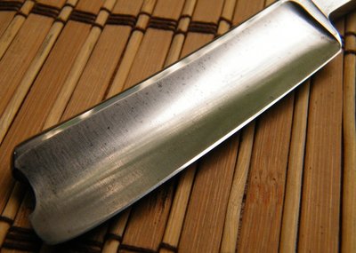 Насколько я знаю, это старая английская бритва из Шеффилда. По словам продавца, это конец 19 века. Но почему она такая "толстая", семь с небольшим мм, я имею в виду толщина обуха? Интересует примерный возраст и стоимость. Рукоять из рога, всего одна небольшая трещинка у пина. Да и вообще, накидайте информации побольше!