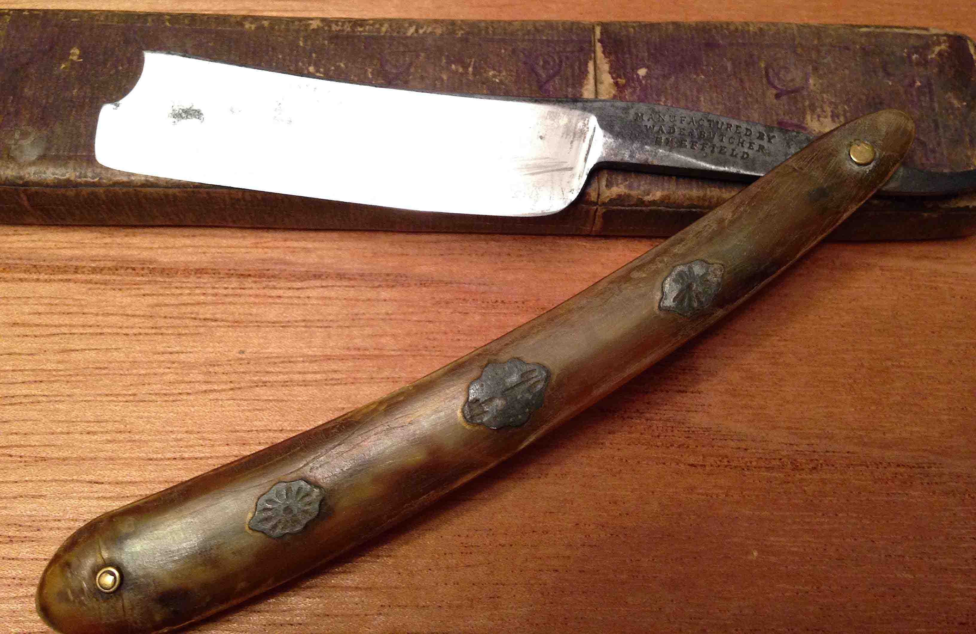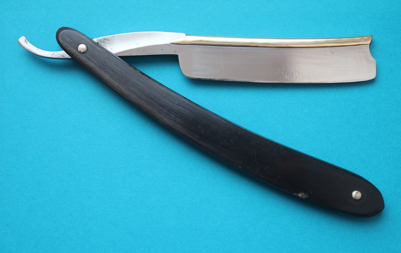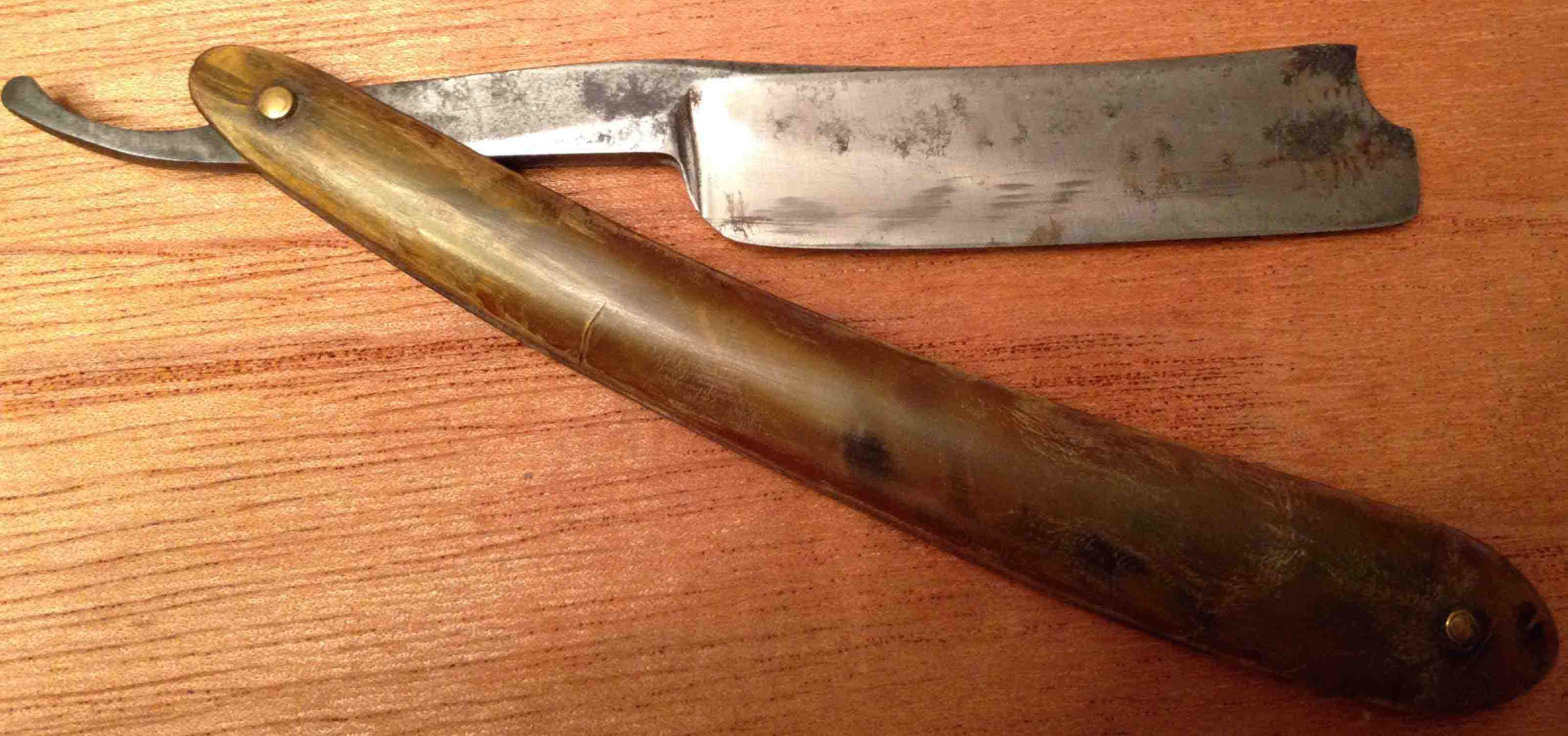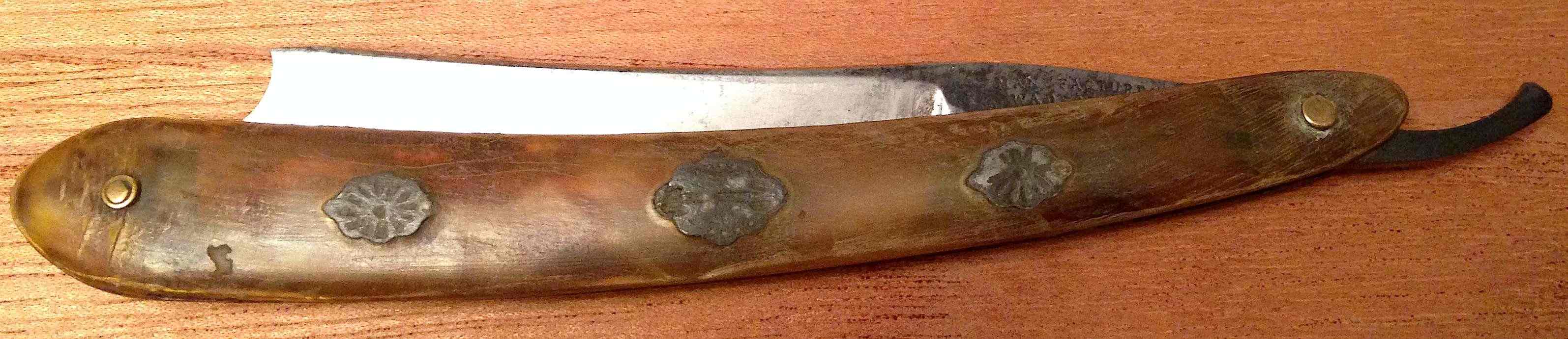 Насколько я знаю, это старая английская бритва из Шеффилда. По словам продавца, это конец 19 века. Но почему она такая "толстая", семь с небольшим мм, я имею в виду толщина обуха? Интересует примерный возраст и стоимость. Рукоять из рога, всего одна небольшая трещинка у пина. Да и вообще, накидайте информации побольше!