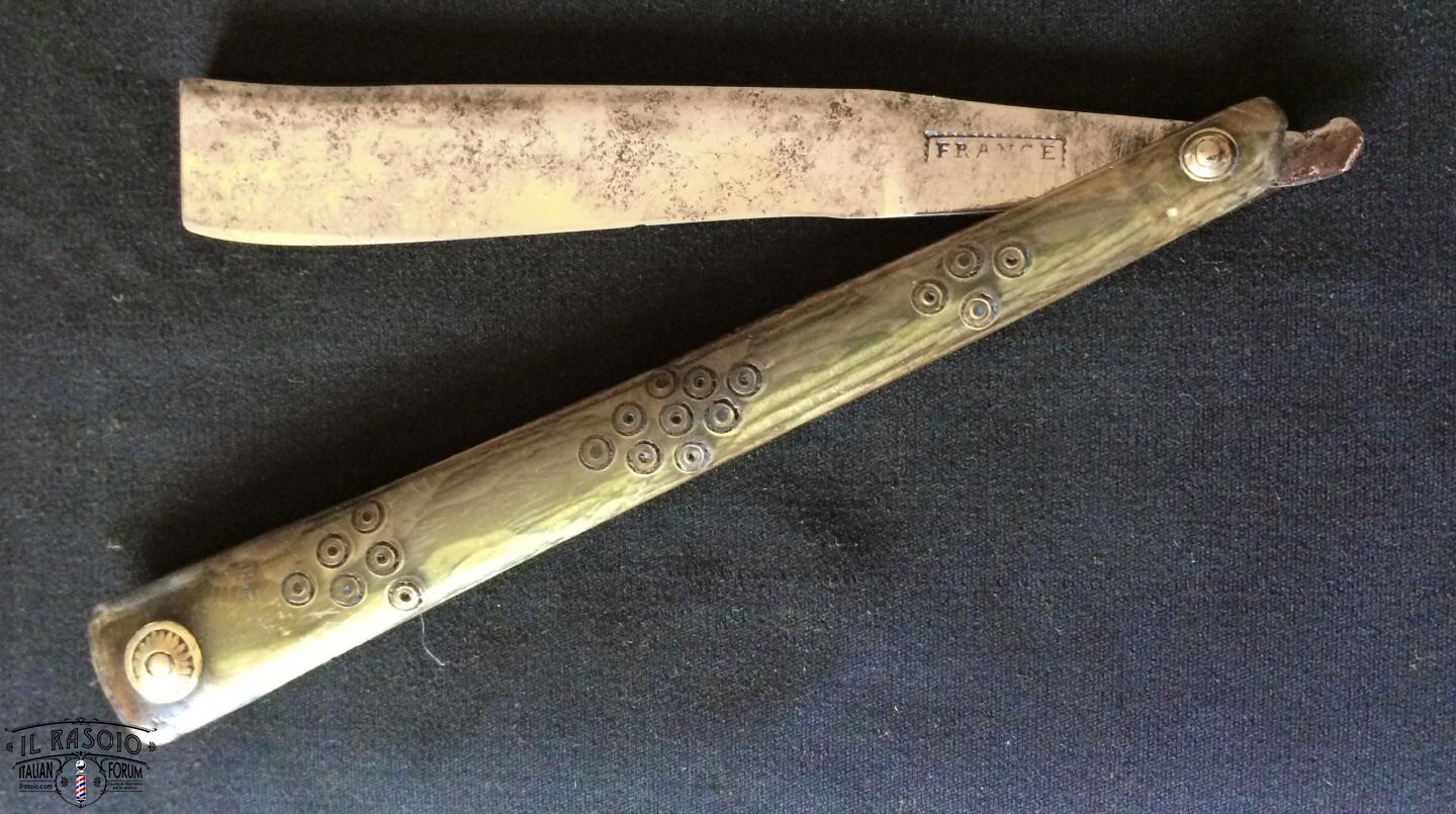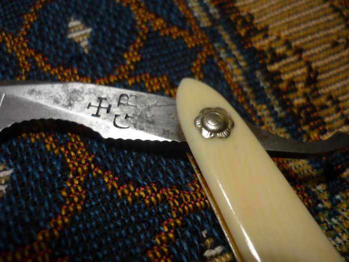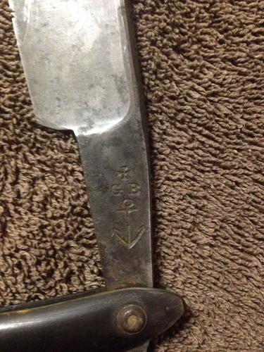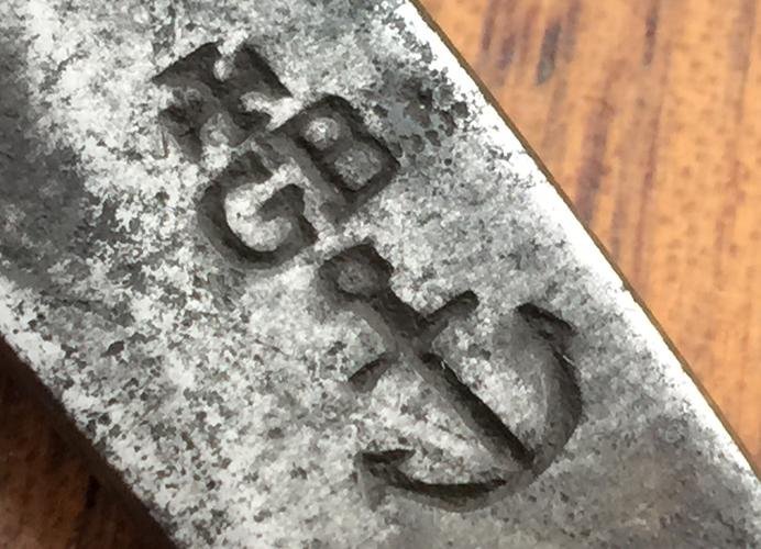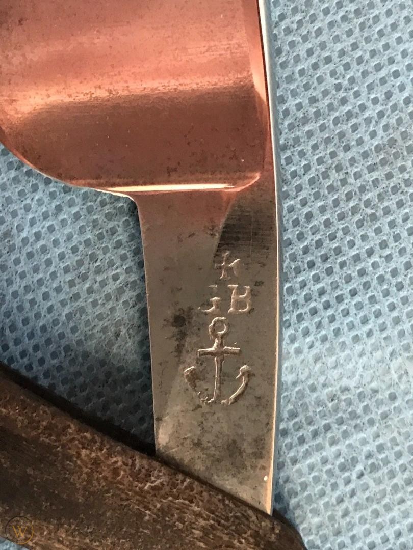 Марка: якорь и мальтийский крест http://homepage.eircom.net/~lawed/SILVERSMITHSPART2.htm "More Old Razors" Генри Т. Ламмус Номер 4. Дата 1785. Производитель Brittain, Wilkinson & Brownell, Шеффилд (1780-1840). Торговая марка: "France". Рукоять: красный рог. George Brittain появился в качестве партнера в компании, которая взяла свое начало на улице Sycamore (1774 год). До этого он был мастером ножевщиком (1773 год). В 1776 году Питер Броунел поступил на обучение к Бриттэйну. В июле 1784 года Джордж Бриттен, Джонатан Уилкинсон, Питер Браунелл и Джозеф Ибберсон основали новую компанию по производству столовых приборов в мастерской Бриттена. Было использовано несколько торговых марок, одна из которых была «GB» с мальтийским крестом и якорем. Значение якоря неизвестно, но его часто можно увидеть с отметками «GB» и мальтийскими буквами. После смерти Джорджа Бриттэйна (1812) его сын, Вердон Бриттэйн (Verdon Brittain) продолжил руководство фирмой с поддержкой Бернарда Бриттэйна. Семья Бриттэйнов была большой, включая ножевиков, сталеваров, производителей пил и другого режущего и прочего инструмента, а так же бритв. С 1815 по 1830-е годы бизнесом руководил третий сын Джорджа Бриттена Вердон, он умер в 1843 году, и семьи разошлись. Фирмы, вовлеченные в компанию,(Бриттэйн , Вилкинсон и Браунел) пошли каждая по своей дороге. Семья Бриттэйнов продолжила свой путь на поприще ножей, режущего инструмента и сталеваров, семья Браунелов продолжили изготавливать ножи (отметка GB и мальтийский крест ушли вместе с ними). Браунелы (Brownells) торговали вплоть до 1861 года, когда они были куплены фирмой Стейси, Пис & Co. (Stacey, Pease & Co), которые так же переняли и логотип (GB и мальтиский крест). В 1850 механик по имени Edward Gem открыл бизнес в Бирмингеме, объединившись с двумя партнерами по фамилии Moilliet сформировал компанию Moilliet & Gem, открывшую офис в Sheffield. Партнерство длилось недолго, прекратившись в 1858 году, но Edward Gem стал представлять себя как преемника Moilliet & Gem, обосновавшись в Шеффилде и изготавливал столовые приборы и ножи, в частности ножи Bowie-style. В какой-то момент, после 1861 года, он приобрел остатки Stacey, Pease & Co, в том числе знаки GB и мальтийский крест. В 1890 бизнес Edward Gems был продан Alfred Field из Alfred Field & Co, который был в производственном бизнесе в Бирмингеме с 1836 года, уехал в Америку и открыл его в Нью-Йорке, вернулся в Бирмингем в 1854 году и открыл филиал в Шеффилде в 1876 году. Хотя Alfred Field умер в 1884 году - за 6 лет, прежде чем его компания купила бизнес Edward Gem & Co, бизнес продолжал его сын Harry и не прекращал торговлю до 1933 года. George Brittain GB, Wilkinson & BrownellОбразцы клейм George Brittain GB, Wilkinson & Brownell