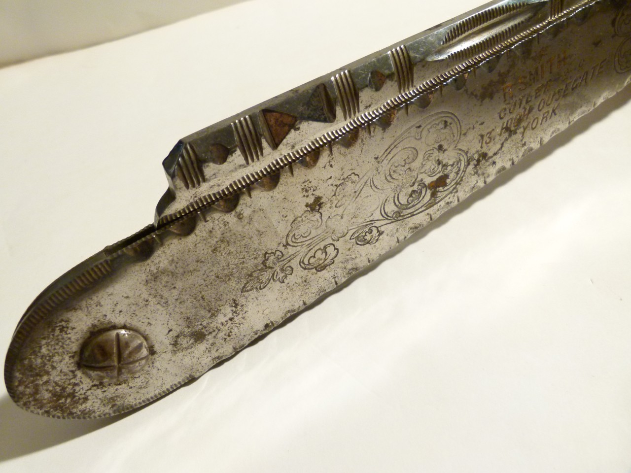 Re: YORK EXHIBITION 1879 CUT THROAT RAZORОписание: Spoiler Show 1 of a number of really fantastic items from the family relations of ROBERT SMITH c1859 of the city of York Cutler & Surgical Instrument Maker... later moved to Scarborough ... these items have been in their family for years and used as display items in their shops.... most of the items are 1 OFF UNIQUE items that you will never see again... made for the Industrial Exhibitions to show off the fine work and various skills the cutlers could produce...from the beautiful fine engraved and gilt pictures on the SCISSORS and cutlery knives etc ... from the MASSIVE oversized items to the MINIATURE items too.. working models if you like.. these items are all very rare and are NOT dangerous weapons. Some of you may well be able to do abit more research into the family history and see that Robert Smith had two sons HENRY & GEORGE FREDERICK .. I have 3 documents listed as 1 lot in another listing in my ebay SHOP which are interesting, these include 2 FREEMAN of the CITY of YORK as well as an APPRENTICE for the son Geroge Frederick....dated from the 1859 era. Then some of you will also be able to see that the MASSIVE .... 17 inch long oversized absolute stunning UNIQUE , horn handled 3 blade engraved YORK INDUSTRIAL EXHIBITION 1879 by R. SMITH with a picture of the building all gilt....I was the UNDERBIDDER of this museum quality item at £5200 ...sold for £5400 ....that was before commission . the item I hope has gone to a good home.. which had an estimated auction price of £300-£500. All these items are worthy of being in a good private collection and SOME are certainly MUSEUM quality items which as I keep saying are 1 off UNIQUE items ...some of them you will see MAY have what you think to be expensive prices... but an item is only worth as much as someone wants to pay for it , isnt it.... I am fortunate to go to some good live auctions where these sort of items occur and I tend to buy them.... they are sought after items. I would be happy to sell the items singular or collective to a good science museum or even one of the Museums in York , Castle Museum or the Yorkshire Museum as the items do originate from there and are of course SOCIAL HISTORY items for all to see.. thing is ...I cannot give the items or donate them either as I have to buy items in live auctions to get them myself....but I am negotiable and have sold alot of unique and rare items to museums all over the world. From the R. SMITH lot .. THE DESCRIPTION OF THE ITEM FOR THIS LISTING BELOW This is the mother of all CUT THROAT RAZORS......if you are a collector of such items then this would be the CENTRE PIECE of your collection... there will NOT be many of these made this size... certainly ONLY this one from this company for this year.....RARE as HENS TEETH as I would usually say! As you can see it is MASSIVE ... it dwarfs any cut throat razor I have ever seen before.. and its made of steel ... with decoration along the main body and the handle too.... this is a real piece of SOCIAL HISTORY .... a SHOW OFF item of the cutlers work ....displayed and exhibited at the YORK INDUSTRIAL EXHIBITION 1879 ... see the blade.. which is SHARP and will not take any prisoners... so do be carefull with it ... polished steel and the same shape as a small useable razor.. engraved and gilt ...with swirls and foliage with a picture of the BUILDING in YORK in the centre.. wording below. The handle has R. SMITH .. CUTLER & C ....13 HIGH OUSEGATE YORK ....on the centre.. with foliage and swirls at the side too. The steel has dark stains in places.. this item has been in the SCARBORO shop window of the SMITH cutlers for many years... it could soon be well ADMIRED once again in your private collection or a GRAND MUSEUM alike for all to see. It is MASSIVE as I keep banging on about it.. its 17 inch long x 2 and half inch wide x nearly 1 and a 1/4inch deep at the nut and bolts holding it all together. .....when in the closed position...x 27 inch long when the blade is right out x 1 and 3/4inch wide blade...it all weighs approx.....1.178kilos... so not only is it long its chuffing heavy as well.! This is not a dangerous weapon...it was made especially for a Victorian exhibition to show off the cutlers skill and not to be used. вес: 1.178 кг цена: GBP 9,950.00 (400 000 руб) пересылка: бесплатно Фотки для понимания размера: