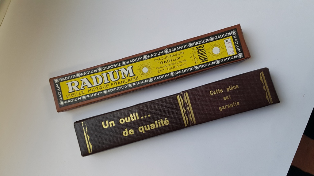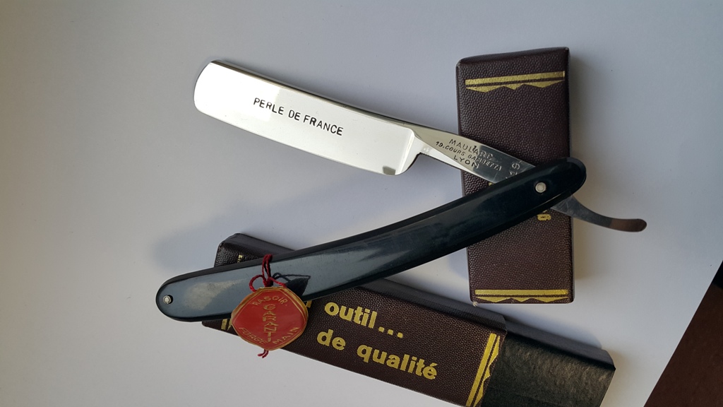 Maulard, LyonПриехал из Франции почти клин в состоянии NOS (в компании с бритвой Radium, о которой я отдельно отчитался). На клинке нескромная такая надпись "Жемчужина Франции". В остальном бритва простая, без украшательств.
