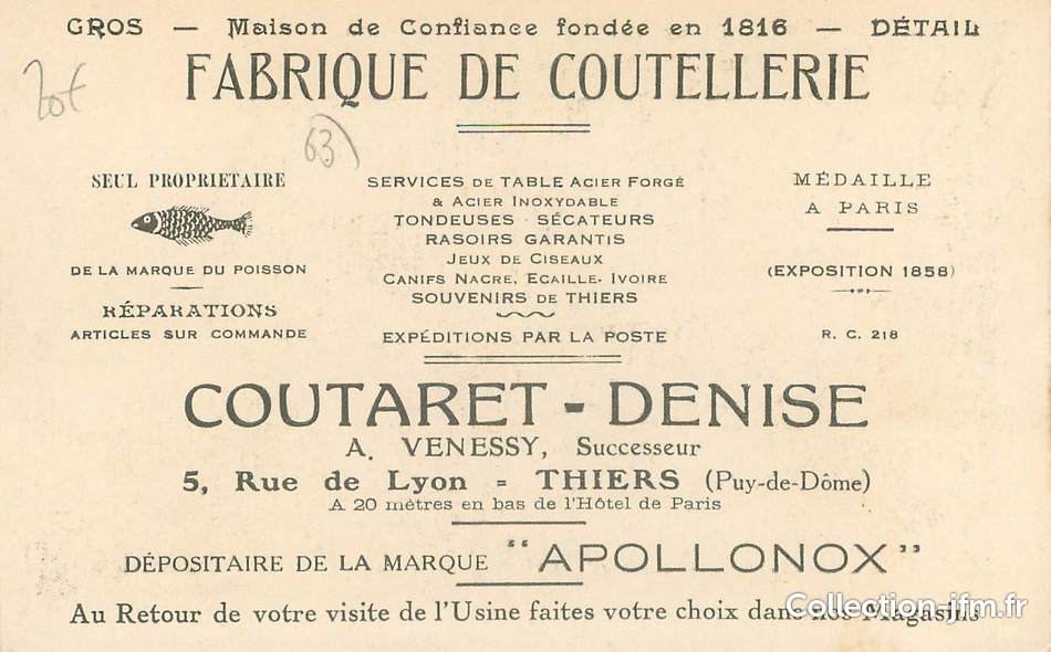 торговая марка зарегистрирована 23/4/1875 на имя Denise Coutaret fils fils - сыновья la carpe MEDAILLE COUTARET Re: РыбкаЗабыл, город Тьер.