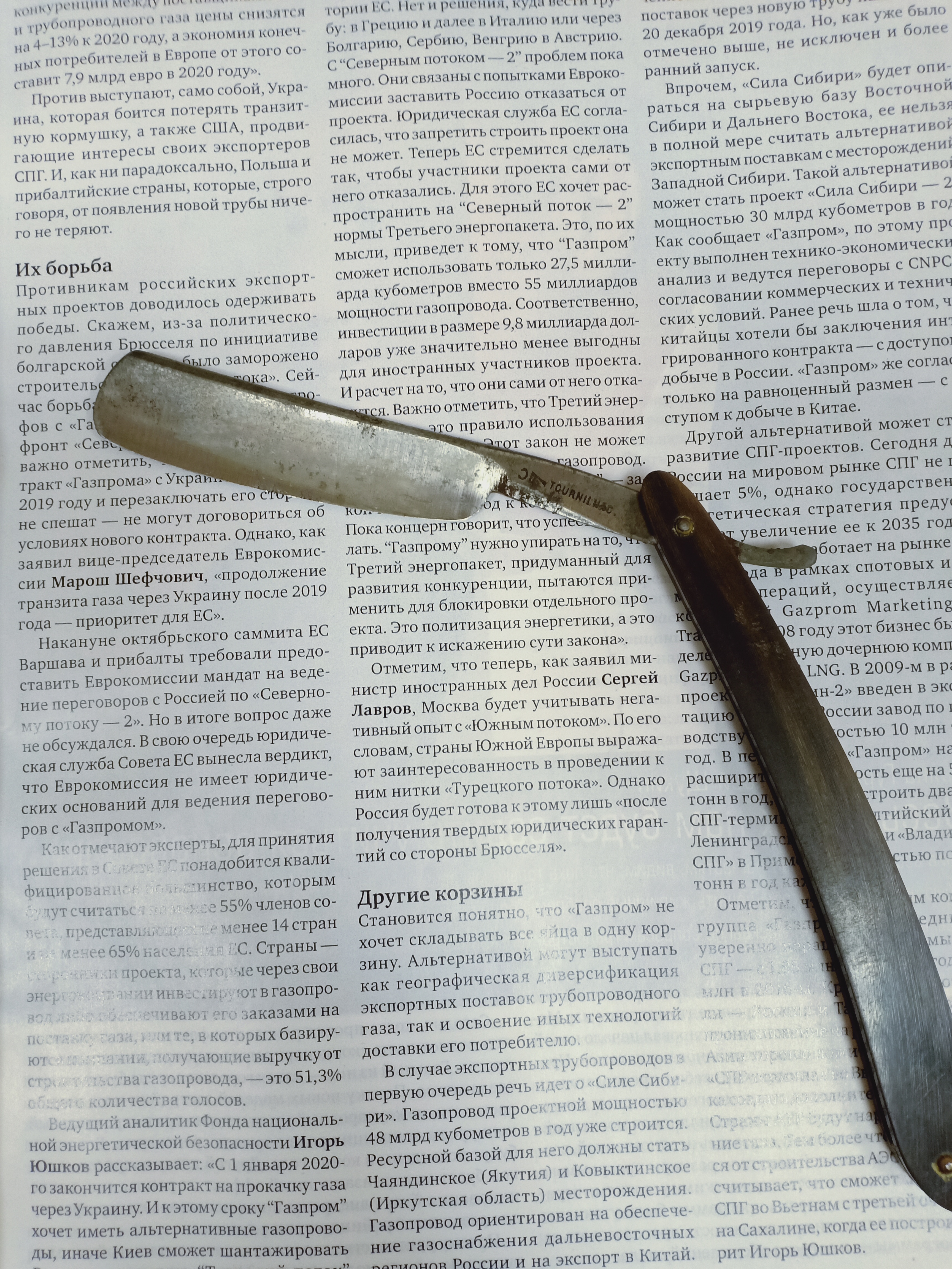 Tournilhac, ThiersДобрый день, уважаемые форумчане. Хочу поделиться опытом использования этой бритвы. Пользуюсь ей, как основной уже пол года. Бритва шикарно бреет. Тяжелая, в руках лежит, как родная) Рез мягкий. Отдал её мастеру на повторную заточку, так как слегка уже затупилась. Жду с нетерпением, когда вернёт обратно) Пробовал более легкие бритвы немецкого, шведского и советского производства - всё не то.