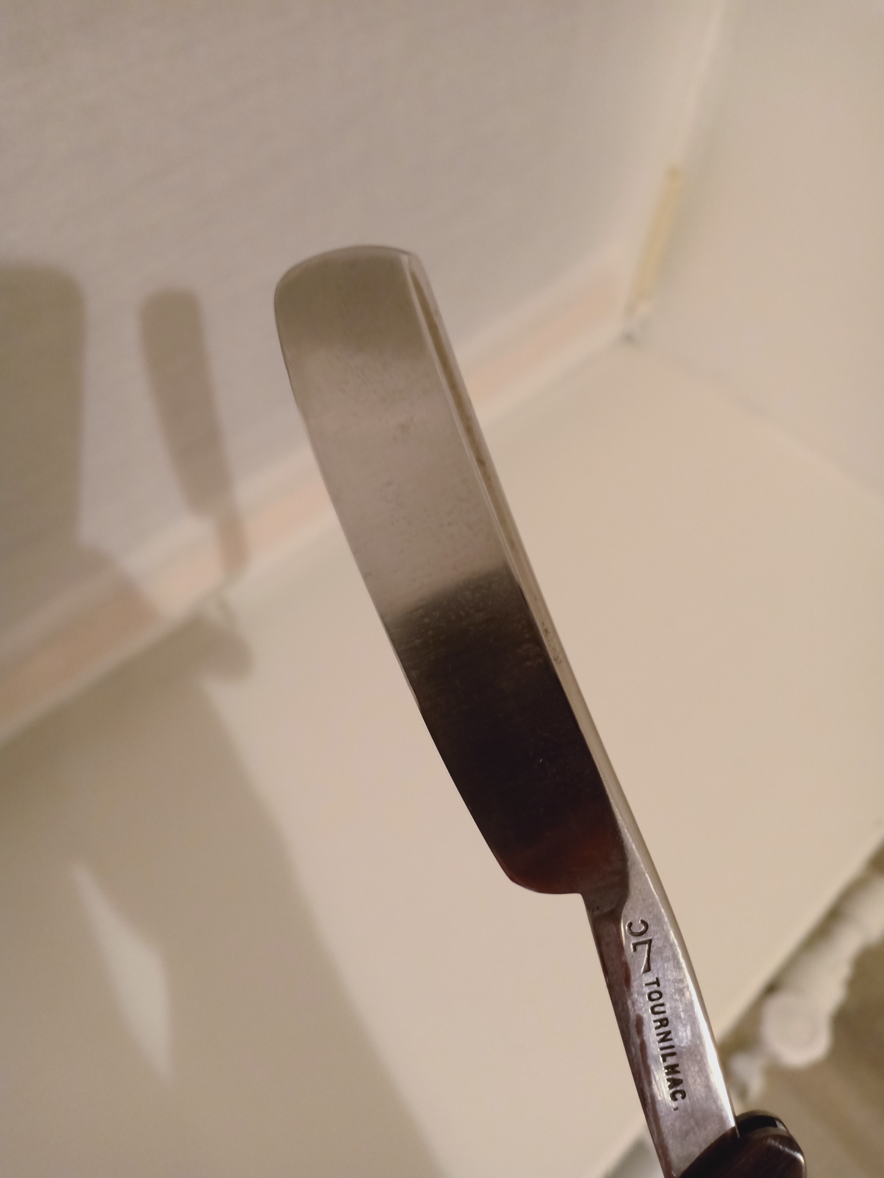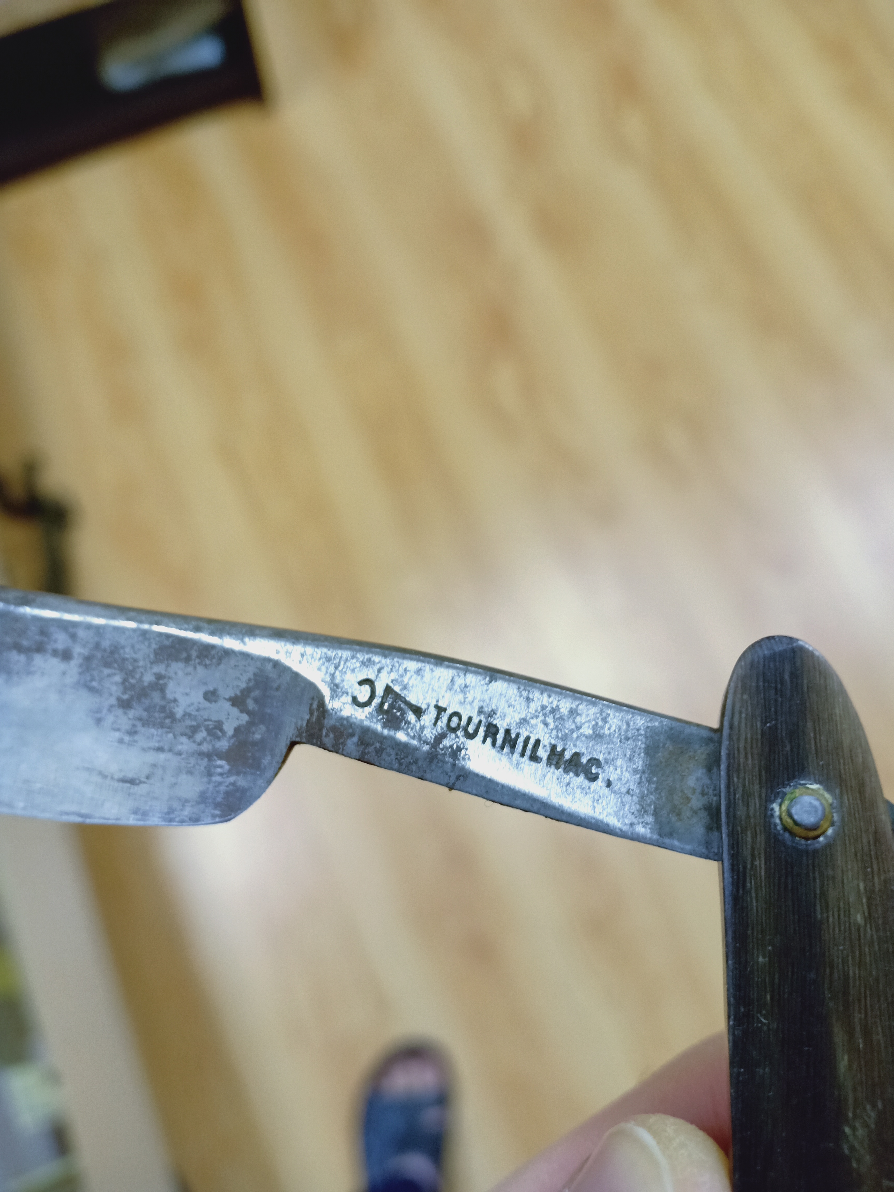 Tournilhac, ThiersВ общем, эта бритва, после недолгих манипуляций с помощью наждачной бумаги от #1000 и более, а также мягкого войлока с пастой ГОИ была очищена от "старости", приведена в очень пристойный вид. Особая благодарность memberlist.php?mode=viewprofile&u=5519 за то, что она довел бритву до ума, профессионально обслужил ее и великолепно заточил. Качество заточки просто супер! Опробовал бритву вчера - она великолепна! Мало того, что держишь в руках отлично сохранившийся антикварный предмет, так он еще и великолепно справляется со своим прямым предназначением! Бритва супер! Если кому попадется - берите, не пожалеете!!!