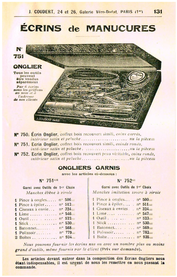 Находясь в 1-м округе Парижа, в Galerie Véro-Dodat, 24-26, он опубликовал каталог под общим названием «ТОНКИЕ СТОЛОВЫЕ ПРИБОРЫ ВСЕХ ВИДОВ».