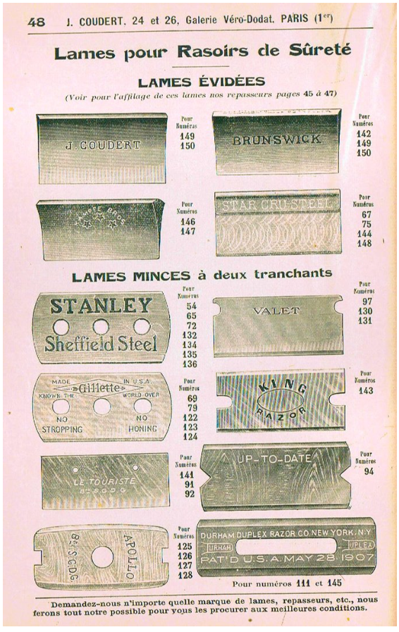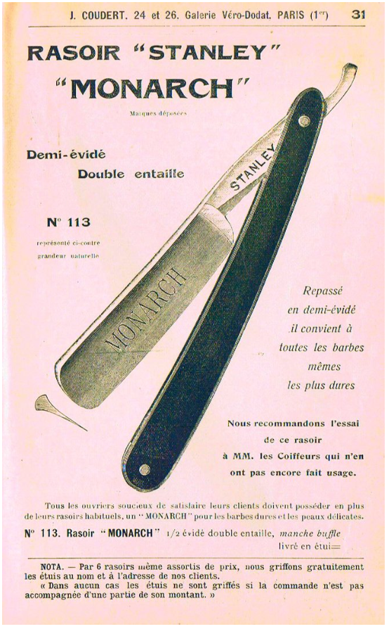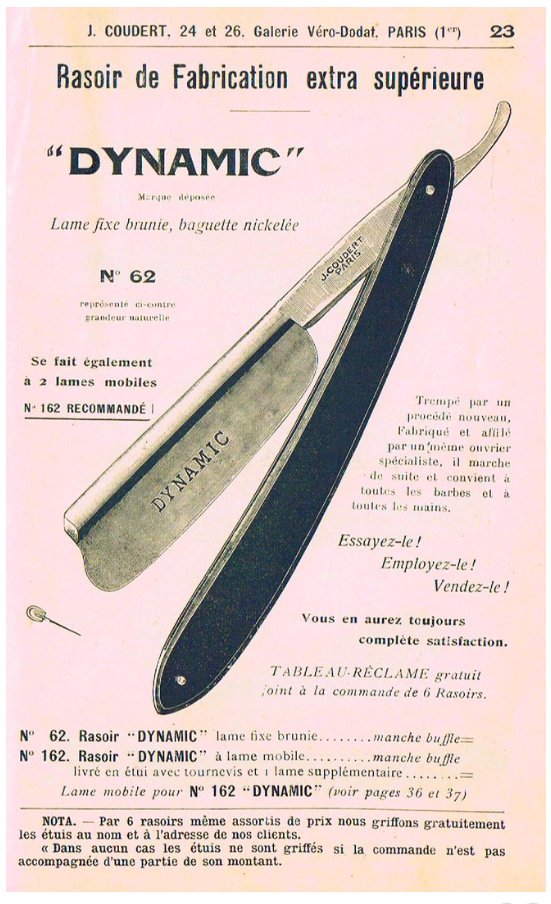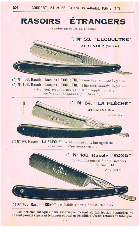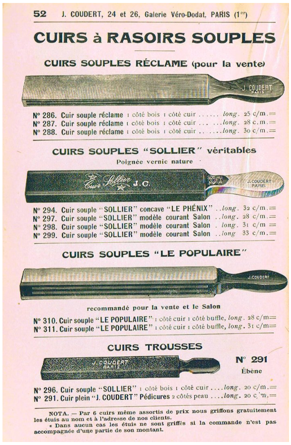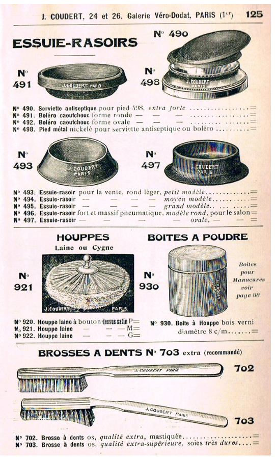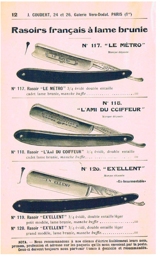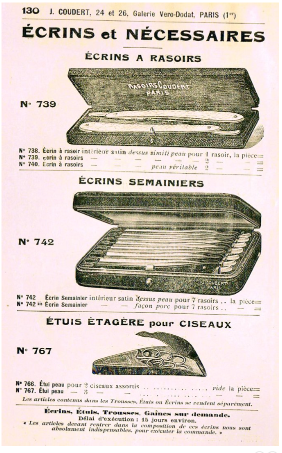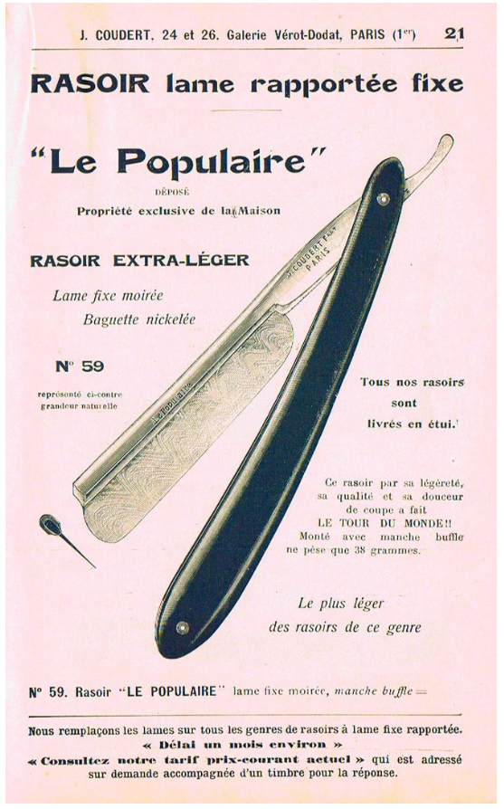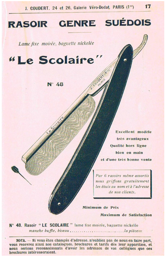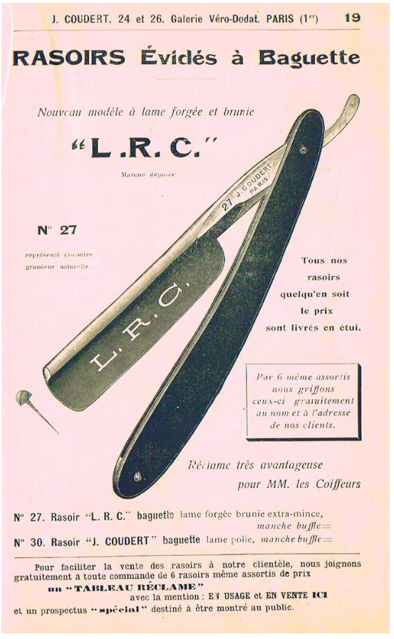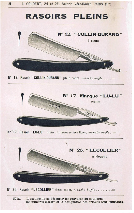 Эта продукция производилась не самим магазином, а для магазина специализированными компаниями. Что касается бритв, мы знаем, что больницы Тьера (Ле Грело), ​​Тьер-Иссар или Фонтениль поставляли большую часть качественных изделий, отмеченных их маркой. Некоторые предметы даже просто перепродавались под именем своего производителя.