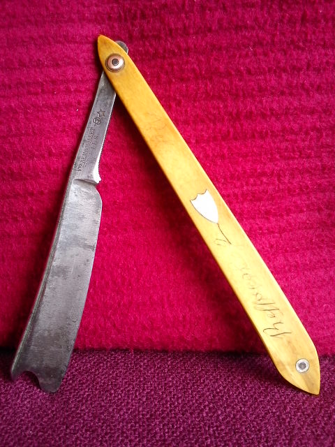 Бритва "Вдова Рамбуйе".Бритва Vve Rambouillet.Французкая старая бритва,19 век.Ручка из слоновой кости.Клеймо короны наверно означает правления императора...Может Наполеона 1.Прикольно сообщать в названии фирмы свое семейное положения...Вдова Рамбуйе.С намеком что свободна...или на жалость давит, чтоб пожалели,купили продукцию.
