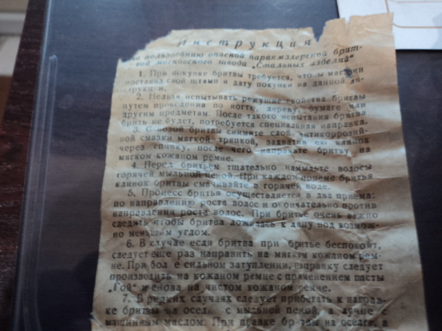 Re: Добыча с барахолки.....Еще парочка Вачи-даже с инструкцией внутри.. При обследовании дома кофров обнаружил еще три инструкции Стиза...и мумию таракана под одной из них..Есть желание прикупить еще один экземпляр -нужен совет спецов..... Прошу спецов высказать мнение по иностранной бритве--меняную ручку во внимание не брать...