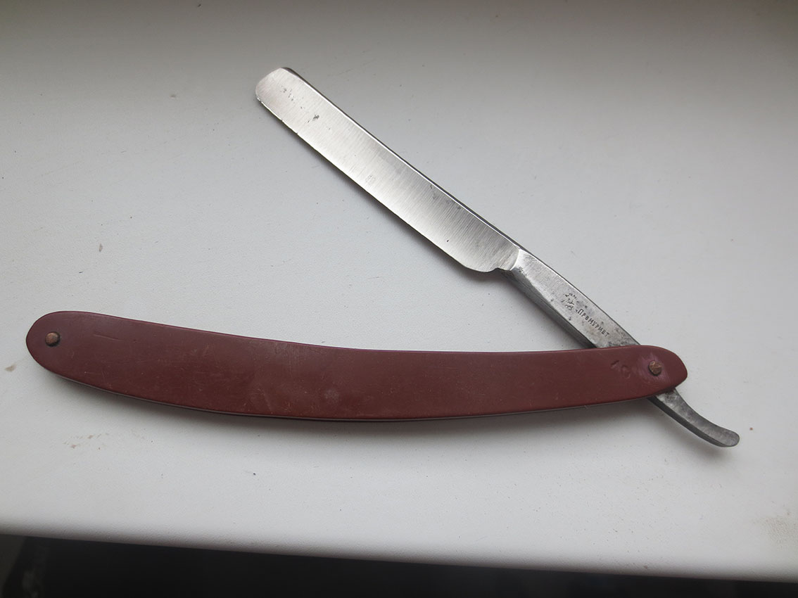 Re: Добыча с барахолкиВот ведь как бывает. На барахолке обещал один чел бритву ЭКСТРА в идеальном состоянии, прихожу, и он коробку принёс, а бритвы в ней нет. Без настроения иду по ряду и вижу коробку от Fisher, а в ней почти в идеале вот такая красавица. Ничего с ней не делал, но очень захотелось её сразу заточить. Завтра попробую ей побриться. Фотографировал телефоном.